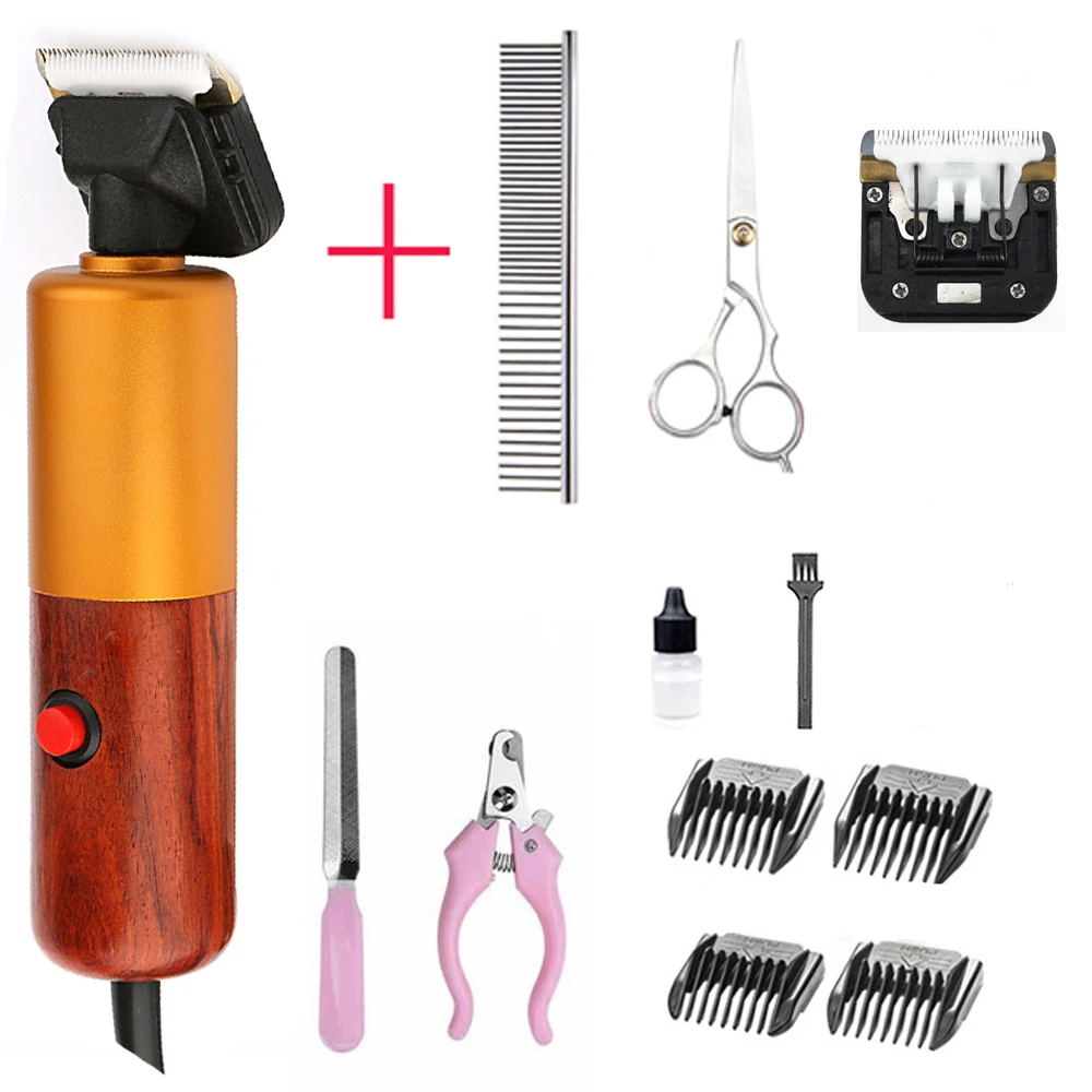 Особенности: 200 Вт Высокая мощность, плавная регулировка скоростиУниверсальное напряжение 100-240 ВГруша дерево + Матовый металлический материал Посылка:1 x Розничная коробка1 x машинка для стрижки домашних животных2 x Концевая расческа1 x бутылка для масла1 x Кисть