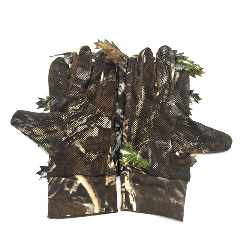 Камуфляжные охотничьи перчатки, военные тактические перчатки, полный палец для рыбалки, велоспорта, перчатки для стрельбы, 3D Листья Bionic