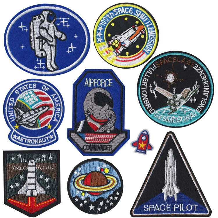 Модные вышитые нашивки воздушный значок пистолет Космос ракета космонавты для мальчиков рюкзак футболка одежда ручная работа швейная аппликация
