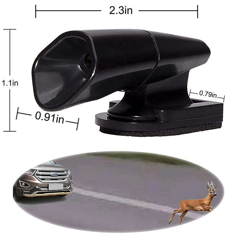 Предупреждающие устройства с изображением оленя и свисток, совместимые со всеми автомобилями, внедорожниками, грузовиками, мотоциклами и квадроциклами. Сохраните оленя! При установке на автомобиль, автомобиль или мотоцикл движется на 35 миль/ч или быстрее, свисток оленя издает звук, предупреждающий оленей, лося, антилопы и кенгуру. Поместите два предупреждающих устройства с оленем на передний бампер каждого транспортного средства.
