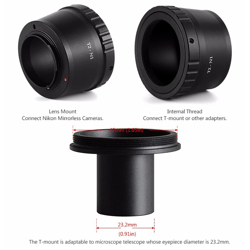 Это новый адаптер Для беззеркальных камер Nikon 1 серии V1 J1 для микроскопов. С двумя адаптерами в комплекте, он предлагает 23,2 мм монтажные размеры на стороне микроскопа. Совместим с камерами Nikon серии 1 J1, J2, J3, V1, V2.