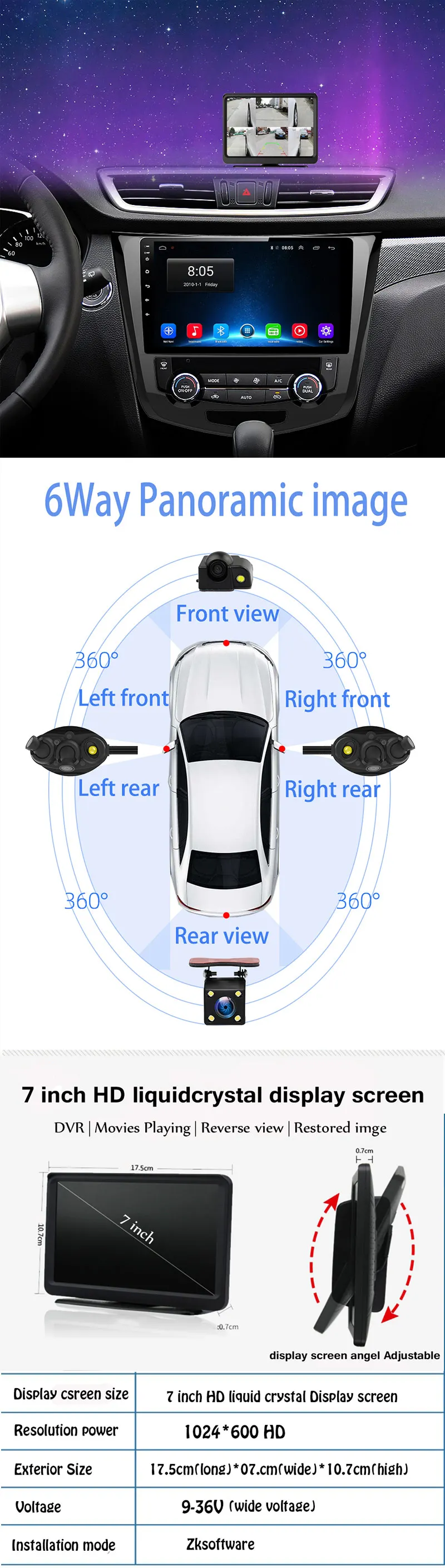 Отзывы о Zhidao F6 4 канала HD 6 раздельный экран и Автомобильная камера в зеркале Панорамное