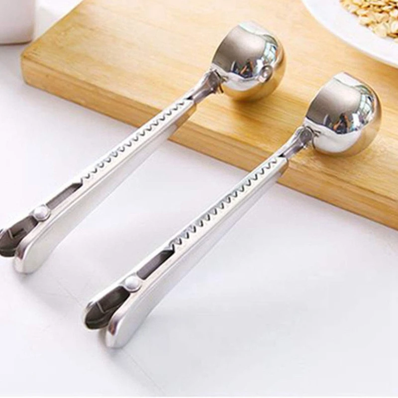 Stainless Steel Ground Coffee Measuring Spoon/Scoop with Bag Clip.