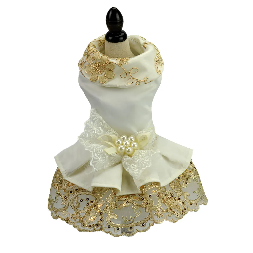 Платья для собак, кружевные платья принцессы с жемчужными принтами, дышащие юбки, футболка, рубашка для собак, одежда для собак, Прямая поставка, 2019