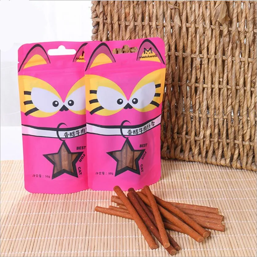 Добавить Таурин говядины полосы кошка закуски мягкие легко кусать говядины молярная палка чистые зубы еда награда закуски говядины полосы 50 г * 5 мешков