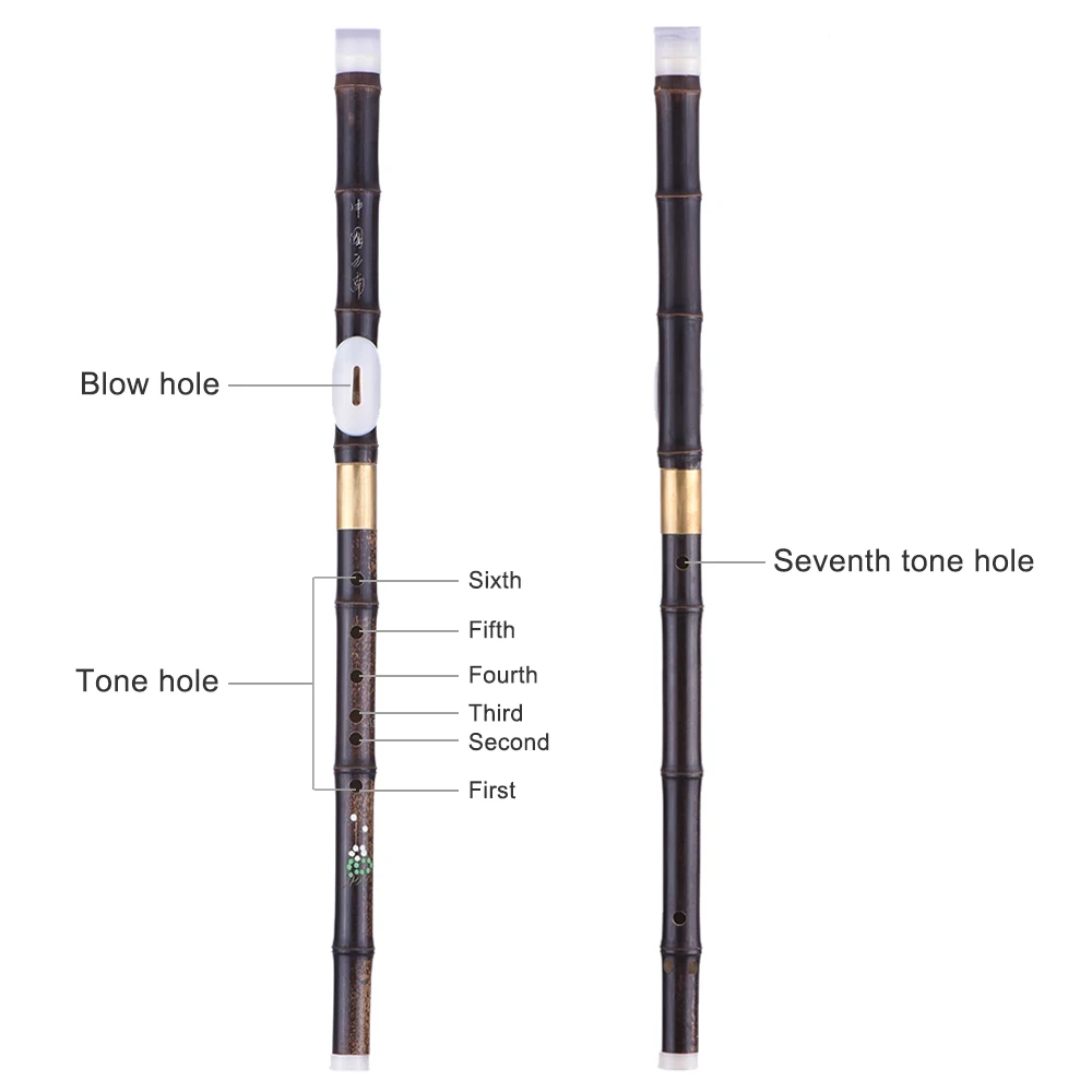 Поперечное игровое bawu имеет 7 тональных отверстий, 1 выдувное отверстие, G-ключ.