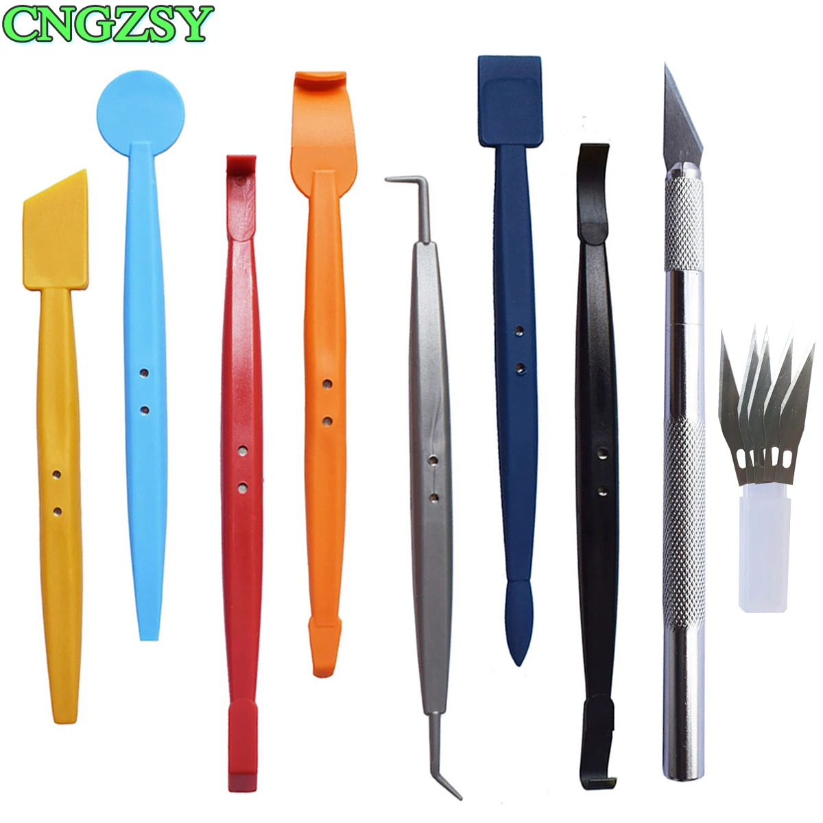 Model: K111 Packaging including: 7pcs/set (storage box packing)+1pc sculpture knife+5pcs extra blades Product name: Car Repair Tools Kit Vinyl Wrap Film Squeegee Scraper Accessories Tools Vehicle Sticker Installation Cutter Knife Net Weight: 160g/set Material: plastic, magnet, steel Features : 1.100% brand new 2.eco-friendly, durable, portable 3.professional, multifunction 4.perfect angle decorate tools Introduction: 1.Long Squeegee with magnet inside design which will help you to fix the film/sticker/foil at the same time when you are cloding edge/removing bubble/cleaning or doing other job 2.Different styles and shapes-This will satisfy your needs of function like different hardness/angle types. For example, the bend squeegee can repair window groove, the pointed head squeegee can reach the corner gap to work, the flat head can remove air bubbles, etc. 3.These squeegees are good for appling films at narrow flat edges,curves and edges ,concave parts of the car/window/auto. 4.Strong handle for enough pressure, soft material and be helpful for you to finish the job Application: 1.Vinyl application tools, building tools, industry tools, car film sticker wrapping tools ,auto/car styling tools, window tint tools. 2.Window water wiper tool, Quick Drying Wiper Blade Squeegee. 3.Windshield Car/Vehicle /Window Cleaning Accessorie for Corner. 4.House ,office dust cleaning wiper . 5.Old film and glue remover. 6.Air bubble remover for screen protector installation.
