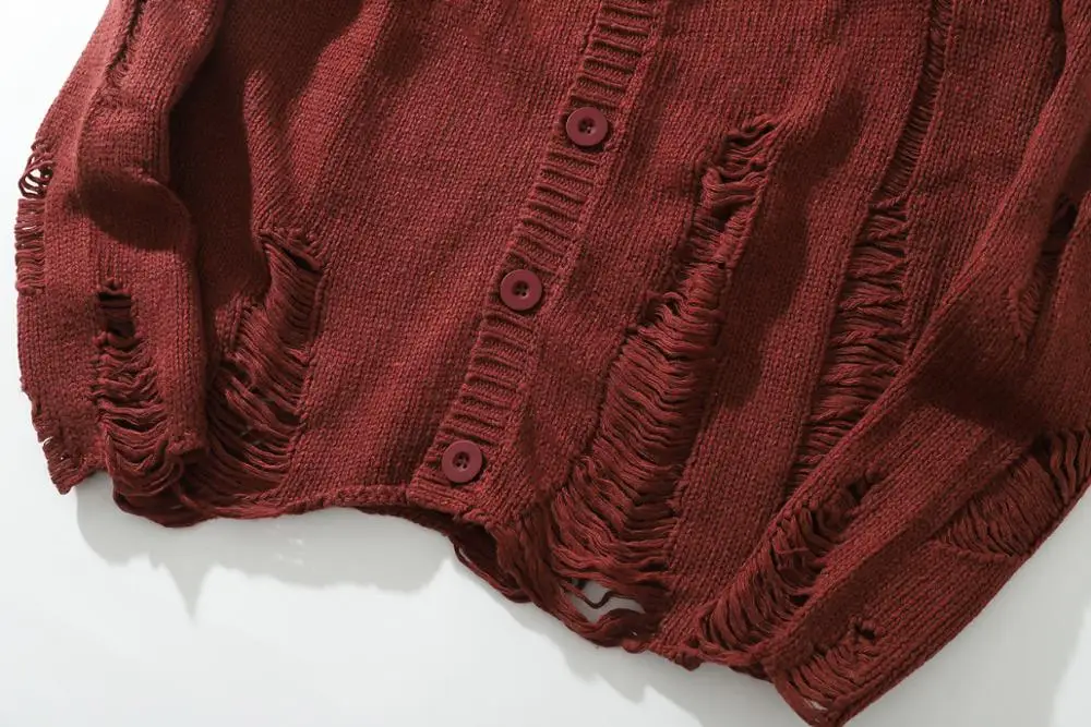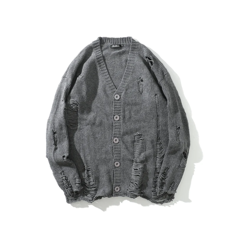 Отзывы о Мужской дизайнерский кардиган с дырками однотонный шерстяной Свободный вязаный