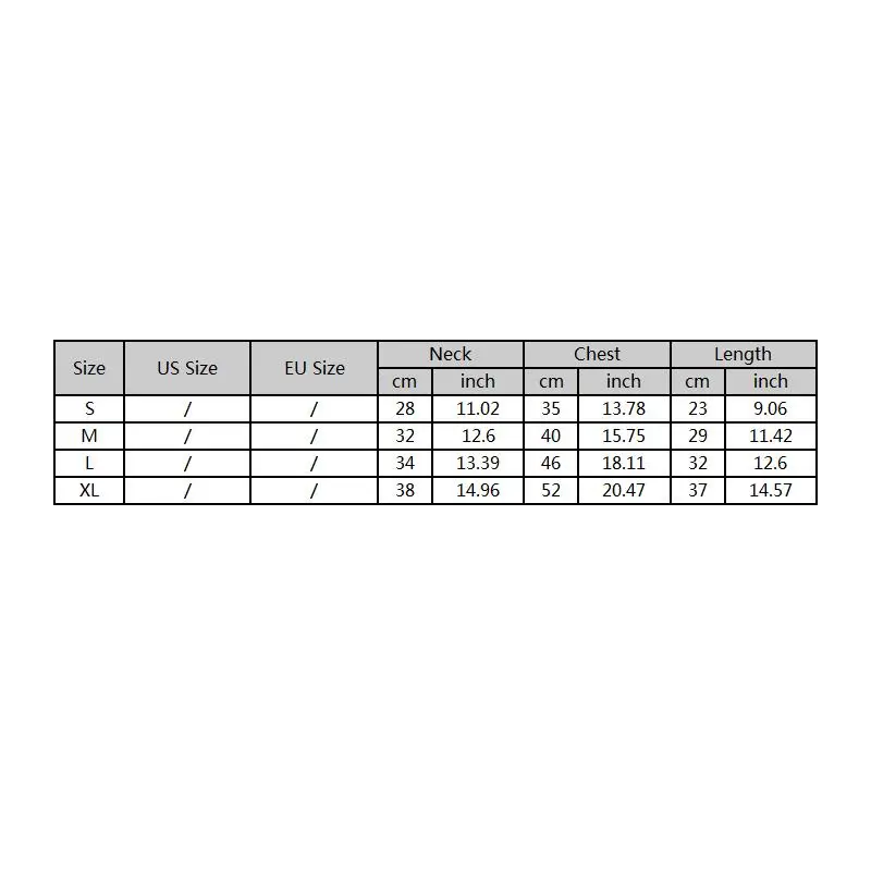 XL:Шея 38 см (14,96 дюйма), обхват груди 52 см (20,47 дюйма), длина спины 38 см (14,96 дюйма)