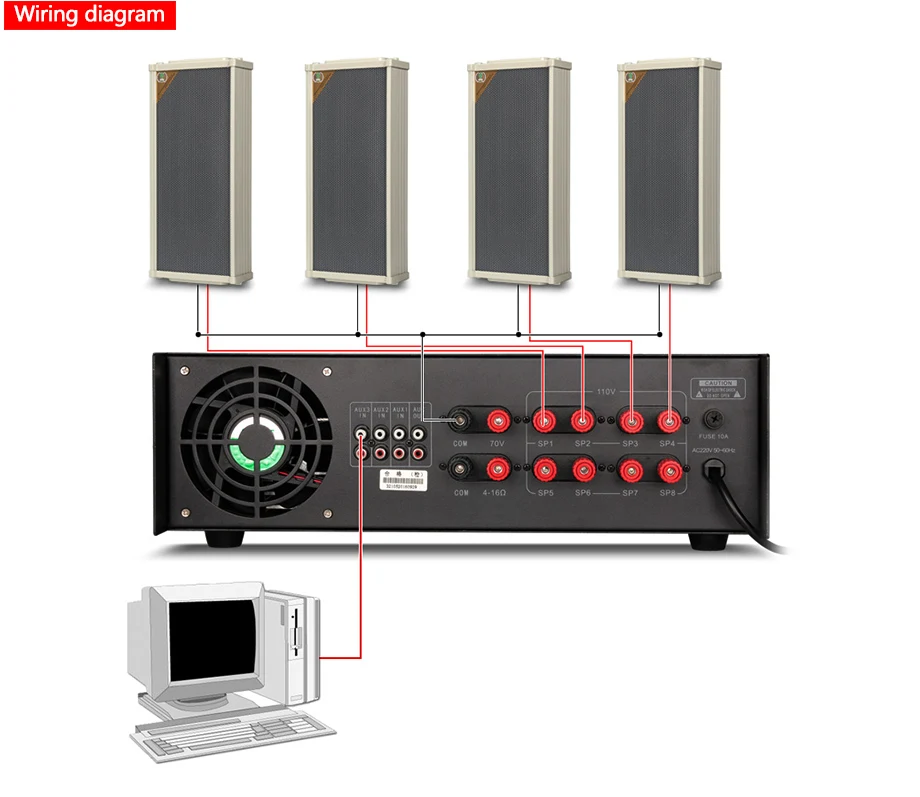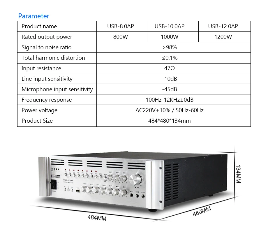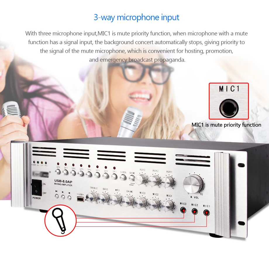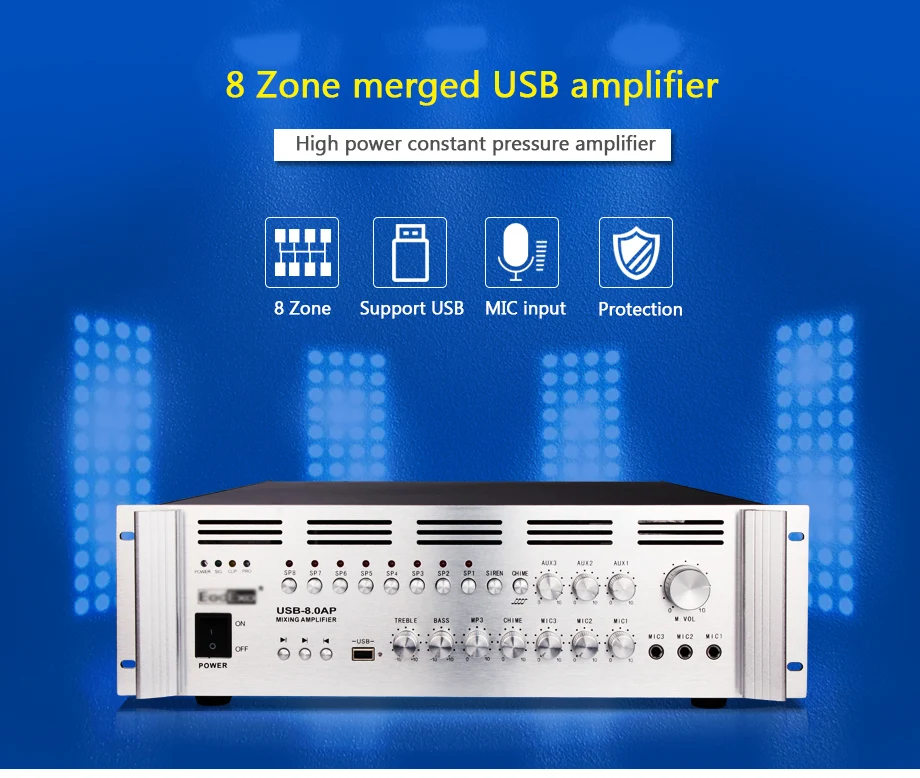 8 зон слили USB усилитель высокой мощности Усилитель постоянного давления Поддержка USB карты есть вход микрофона