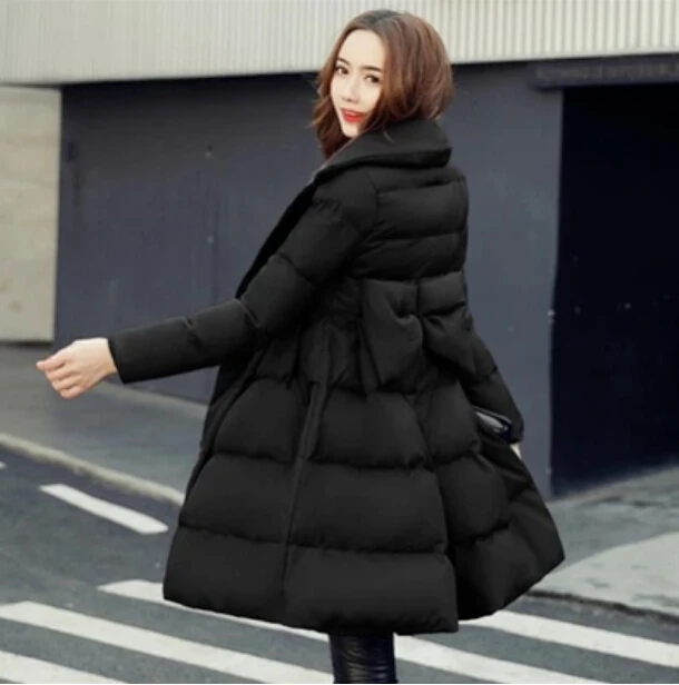 Отзывы о 2019 зимнее теплое пальто для беременных женщин с большим бантом Длинная женская