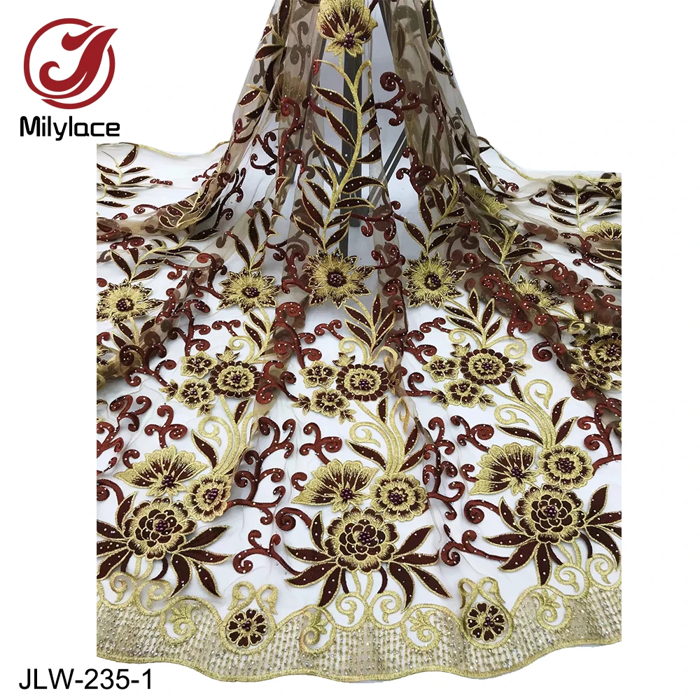 Milylace 2019 романтическая французская Кружевная Ткань 5 ярдов Цветочная вышивка тюль кружевная ткань с бусинами и камнями для свадьбы JLW-235