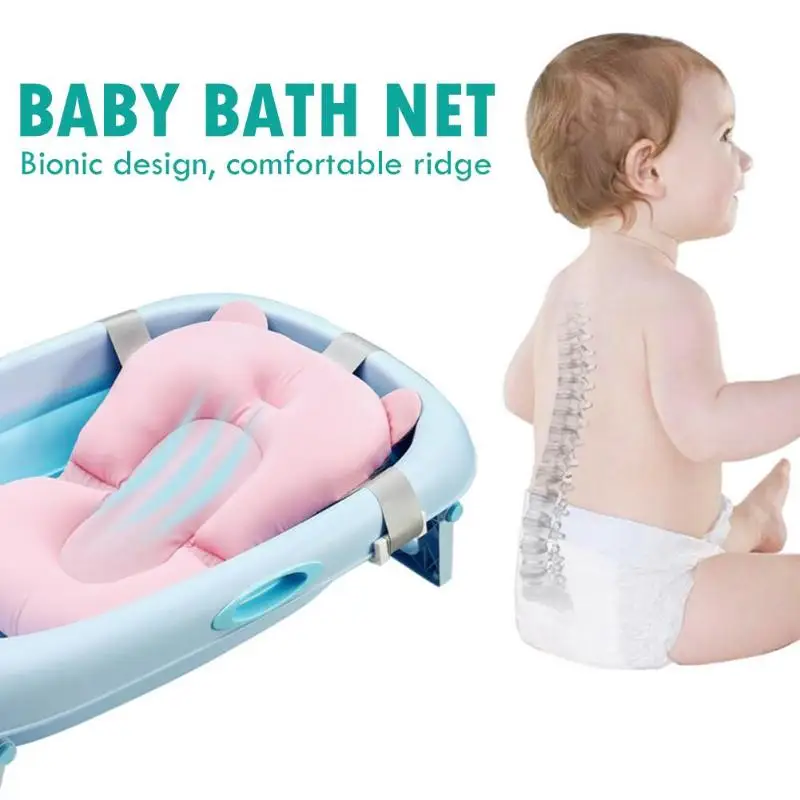 Коврик для ванной для новорожденных, бионический дизайн, удобная защита хребта, больше чувств безопасности для малыша, зона типа множественный комфорт и безопасность, 3D сетка структура + полистиропена наполнитель, поверхность купального костюма дышащая и быстросохнущая, легко устанавливается, подходит для большинства ванн.
