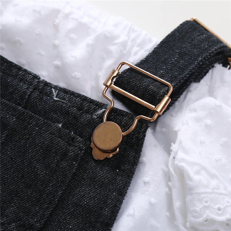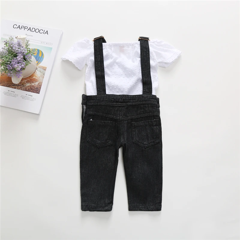 Отзывы о 1-5T 2pcs Jumpsuit for Girls White T-shirt Toddler Overalls Black Denim Jeans Outfit Back to School Clothing Set | Детская одежда и