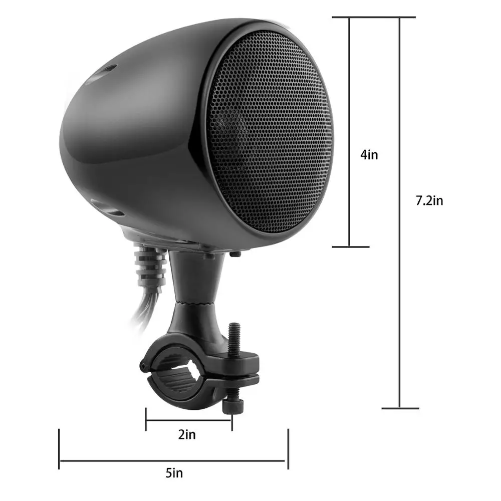 Эта bluetooth-акустическая система обеспечивает высокое качество звука и очень коротка для установки и работы, с классической и тщательно обработанной верностью, это, безусловно, прекрасный выбор для велосипедистов, которым нравится слушать музыку в пути. Флуоресцентный Особенности ^ 4 "классический корпус пули, прочная конструкция, компактный и высокое качество. ^ 3 "Улучшенный Hi-Fi класс Полнодиапазонный динамик ядро, отличная звуковая производительность. ^ Встроенный Bluetooth 4,1, легко передает музыку с телефона на устройство в любое время и в любом месте. ^ Поддержка воспроизведения музыки AUX MP3. ^ Встроенный усилитель класса D 300 Вт, поддержка непрерывного увеличения. ^ Интегрирован с полнофункциональным проводным управлением, очень прост в эксплуатации во время вождения. ^ SAE кабель быстрого отключения питания, легко подключить к батарее транспортных средств. Флуоресцентный Технические характеристики Встроенный усилитель Входное напряжение: 10-16 В постоянного тока Входная чувствительность: 100MV-3000MV Номинальная мощность: 2*20 Вт @ 4Ω Пиковая мощность: 300 Вт Канал: 2,0 Частота отклика: 20 Гц-20 кГц S/N: >80 дБ Встроенный Bluetooth Проводной пульт дистанционного управления с одним ключом включения/выключения Динамики Размер контура: 4 "* 5" Ядро: 3 "полный диапазон Номинальная мощность: 20 Вт Резонансная частота: 80 Гц Сопротивление: 4Ω Чувствительность: 84 дБ Частотная характеристика: 80 Гц-16 кГц Флуоресцентный Посылка в комплекте Основной динамик * 1 Slave Speaker * 1 Рулевые зажимы * 2 SAE для кольцевого терминала шнур питания * 1 3,5 мм AUX кабель * 1 Руководство пользователя * 1 Застежки-молнии * 4