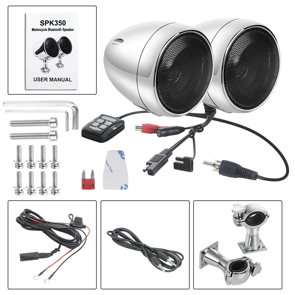 Мотоцикл/ATV аудио система с Bluetooth FM радио Aux вход проводной контроль одна пара 4 "водонепроницаемые колонки (хром)