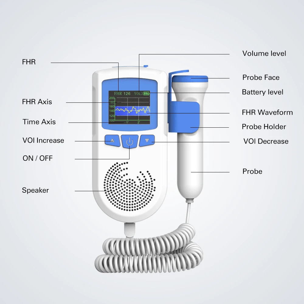 В процессе измерения движение щупа генерирует шум благодаря движению плода. В то же время, если не обнаружено положение сердца плода, шнур кровоток также вызовет шум. Необходимо определить положение сердечного ритма плода, а затем отслеживать звук сердечного ритма плода»