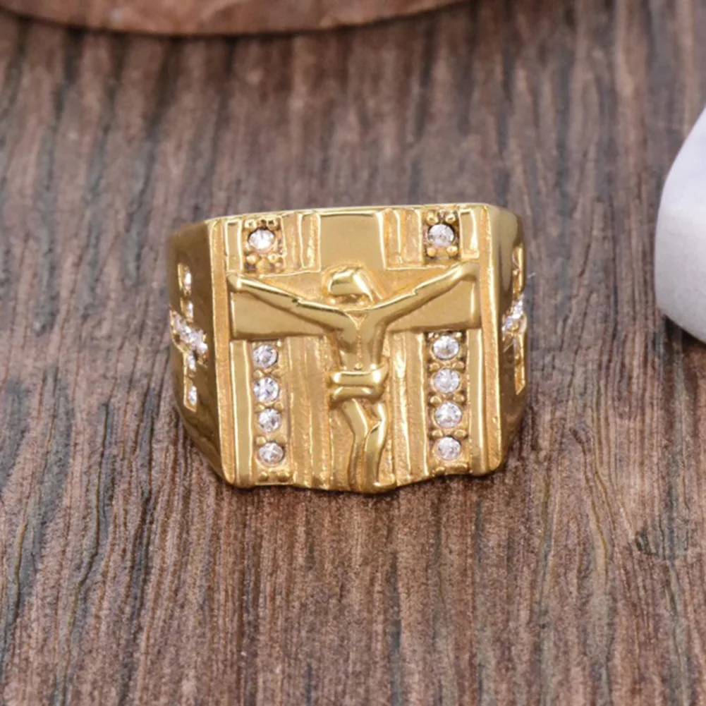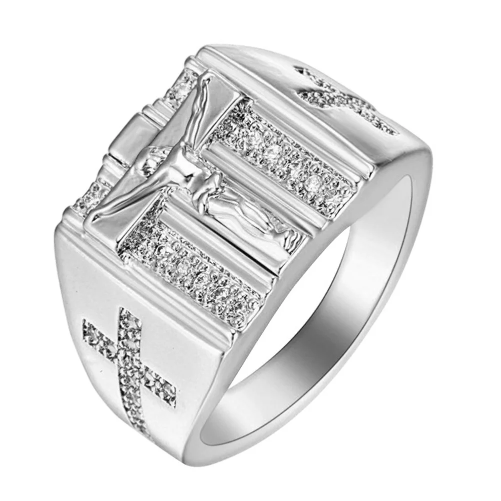 Шикарный Иисус крест резной кубический циркониевая инкрустация кольцо унисекс свадебное ювелирное изделие, подарок