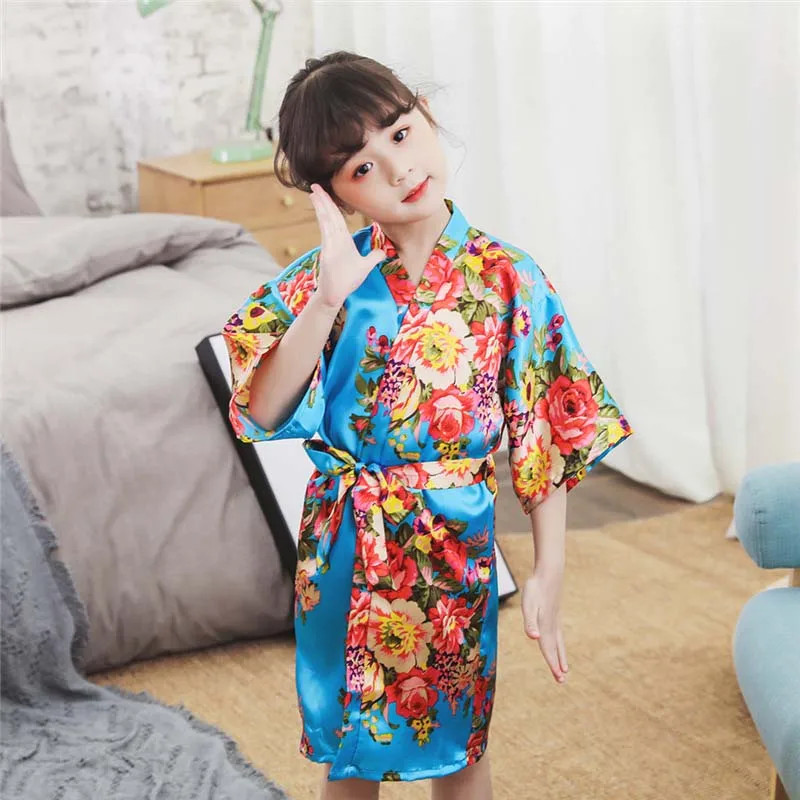 Летнее платье с рисунком в виде пионов для маленьких девочек халат для малышей; Для детей; Для девочек с цветочным рисунком Шелковый атласное кимоно; Наряд, одежда для сна, одежда От 2 до 12 лет