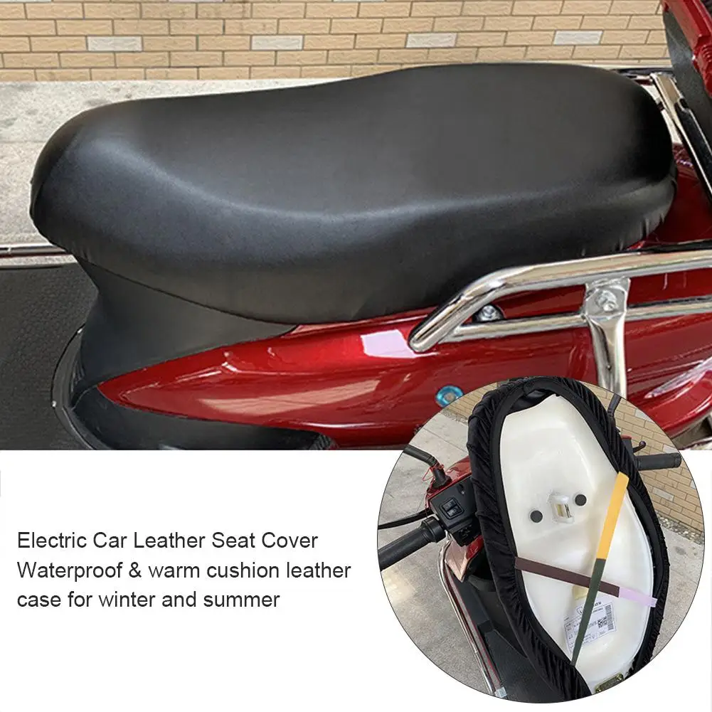Мотоциклетный чехол на сиденье для электровелосипеда, кожаный Теплый Бархатный Водонепроницаемый Пылезащитный УФ-протектор, прочный черный Чехол на подушку для электровелосипеда