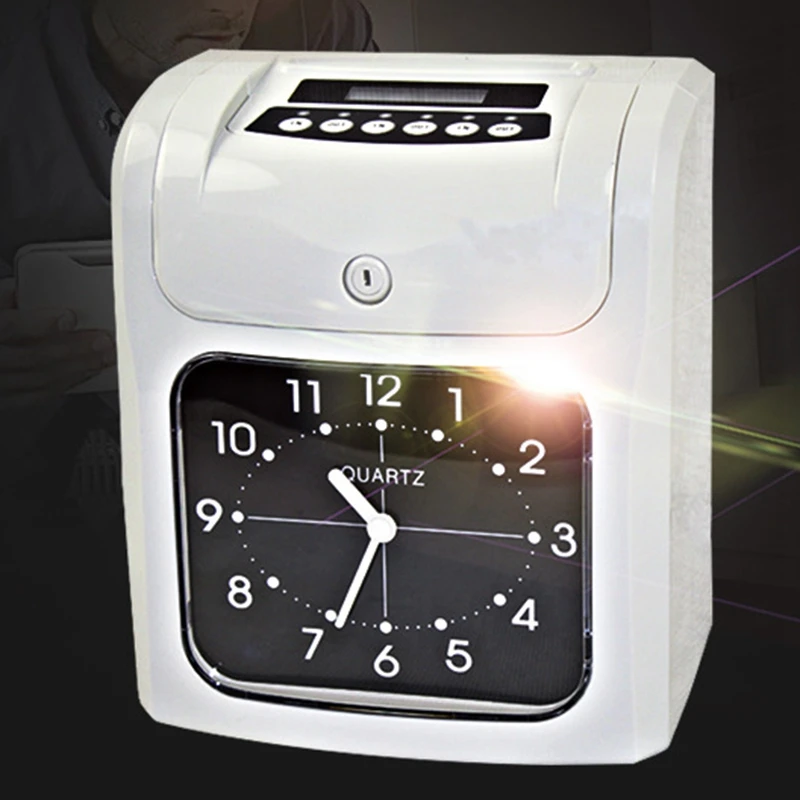 Два цвета печати, черный цвет означает регулярную посещаемость, в то время как хорошо отмеченный красный цвет показывает ненормальную посещаемость. с 2 отверстиями на задней стороне для настенного монтажа, и его также можно разместить на столе стабильно использовать. оснащен динамиками для воспроизведения музыкального тона, а также вы можете подключить к нему внешний звонок для уведомления сотрудников о времени начала и времени окончания.
