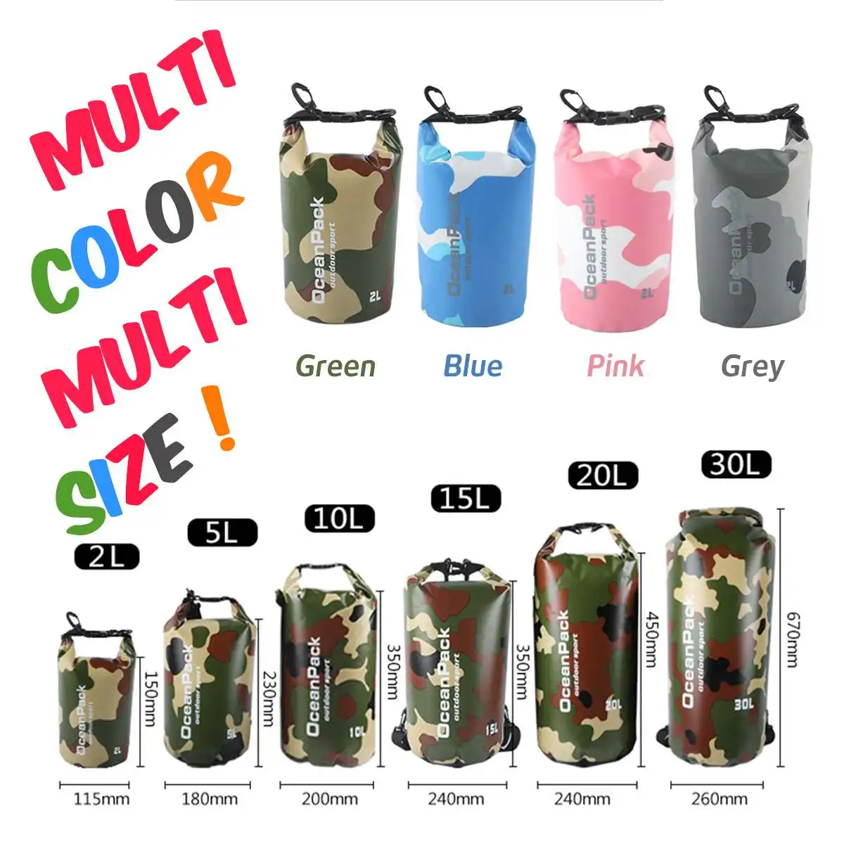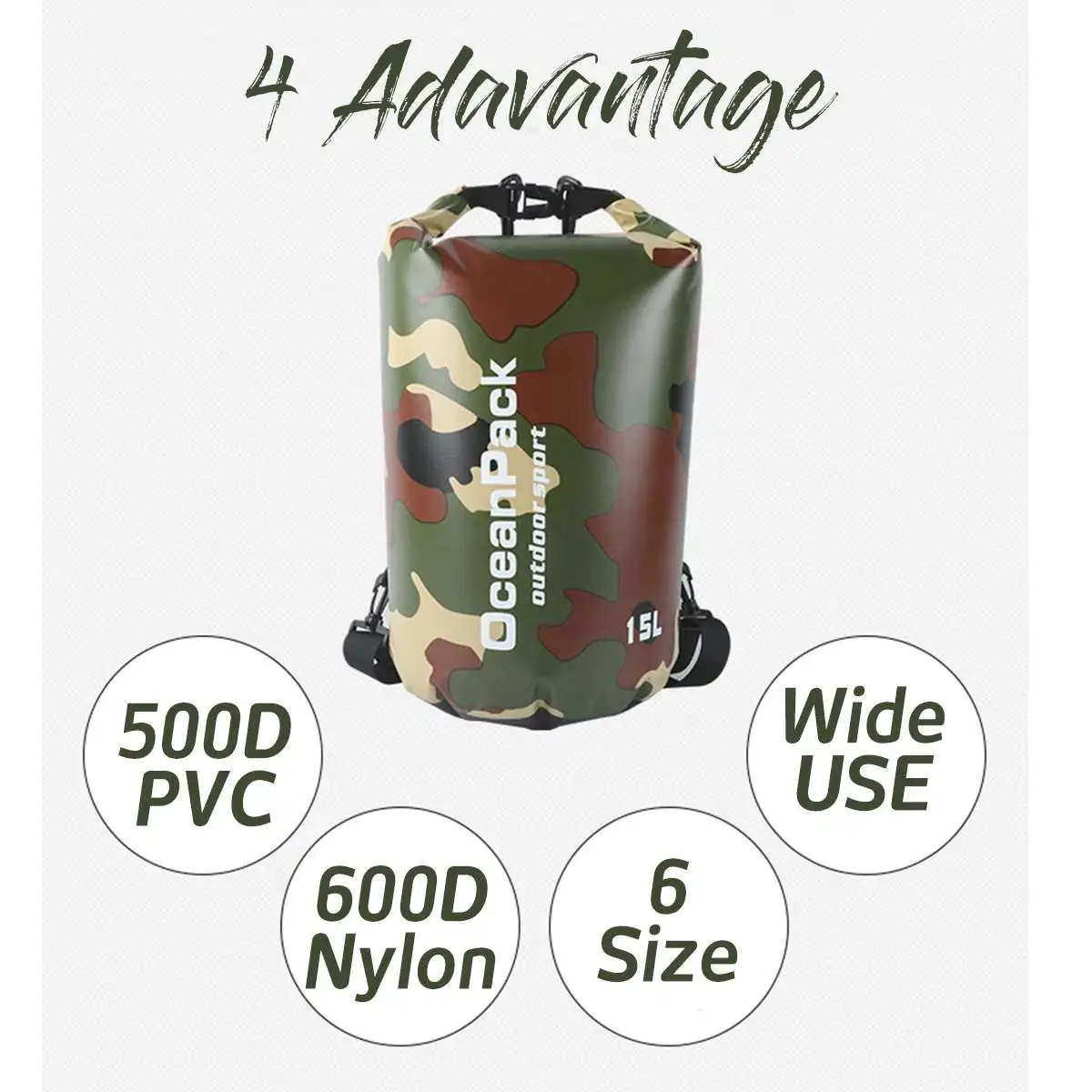 2L/5L/10L/15L/20L/30L500D ПВХКамуфляж ВодонепроницаемыйСухойСумки для хранения мешок рюкзак для каноэ каякГребля Рафтинг Спорт на открытом воздухе Плавание Сумки