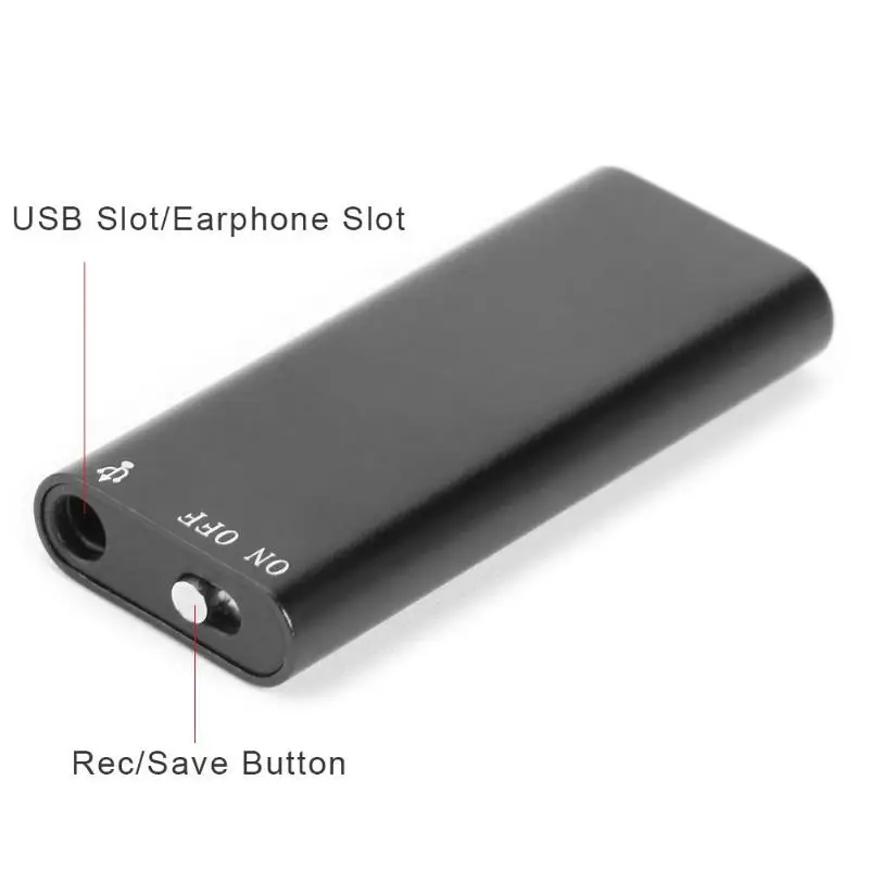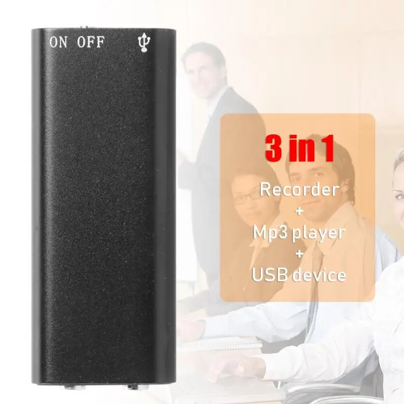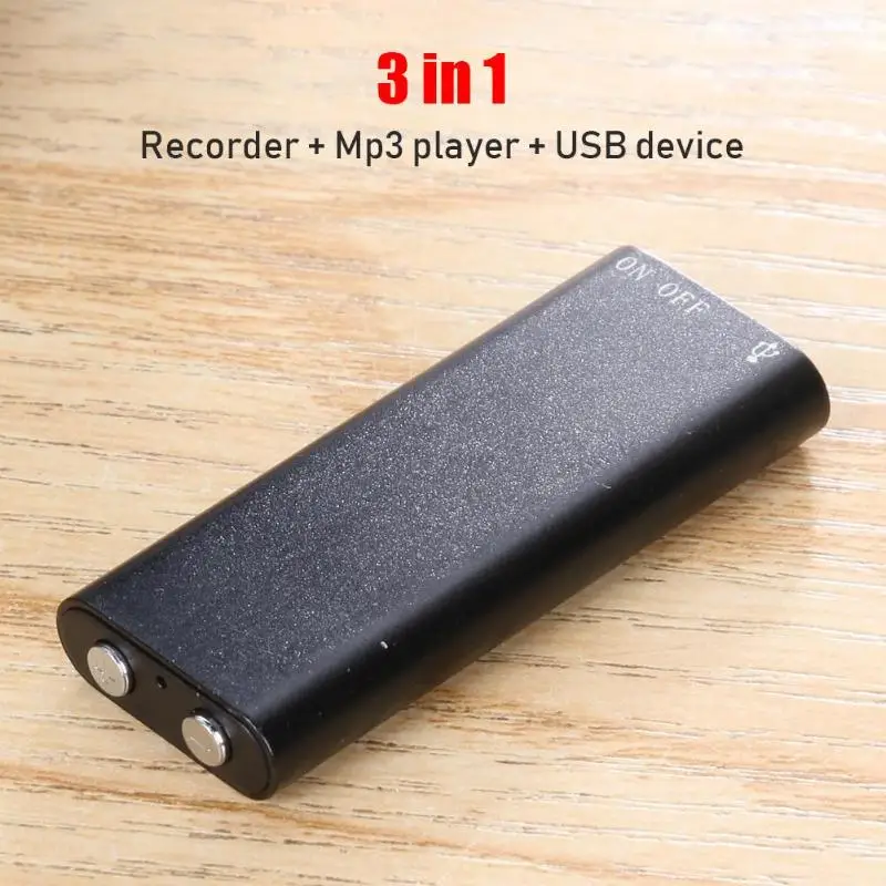 Specifications: 1. Battery capacity: lasts about 8 hours continuous recording 2. About 8 hours duration continuous operation 3. Voice recording format: WAV 4. Music format: MP3/WMA/WAV 5. When continue recording, the duration of 4GB is about 48 hours. 6. Sampling frequency: 48 KHz 7. Bit: 192 KBPS 8. Product size: 45*17*6mm/1.77*0.67*0.24" Notes: 1. There may be slight size deviations due to manual measurement, different measuring methods and tools. 2. The picture may not show the actual color of the item because of different photographing light, angle and display monitor. 1 X USB cable 1 X Charger 1 Pair X Earphones 1 X Manual