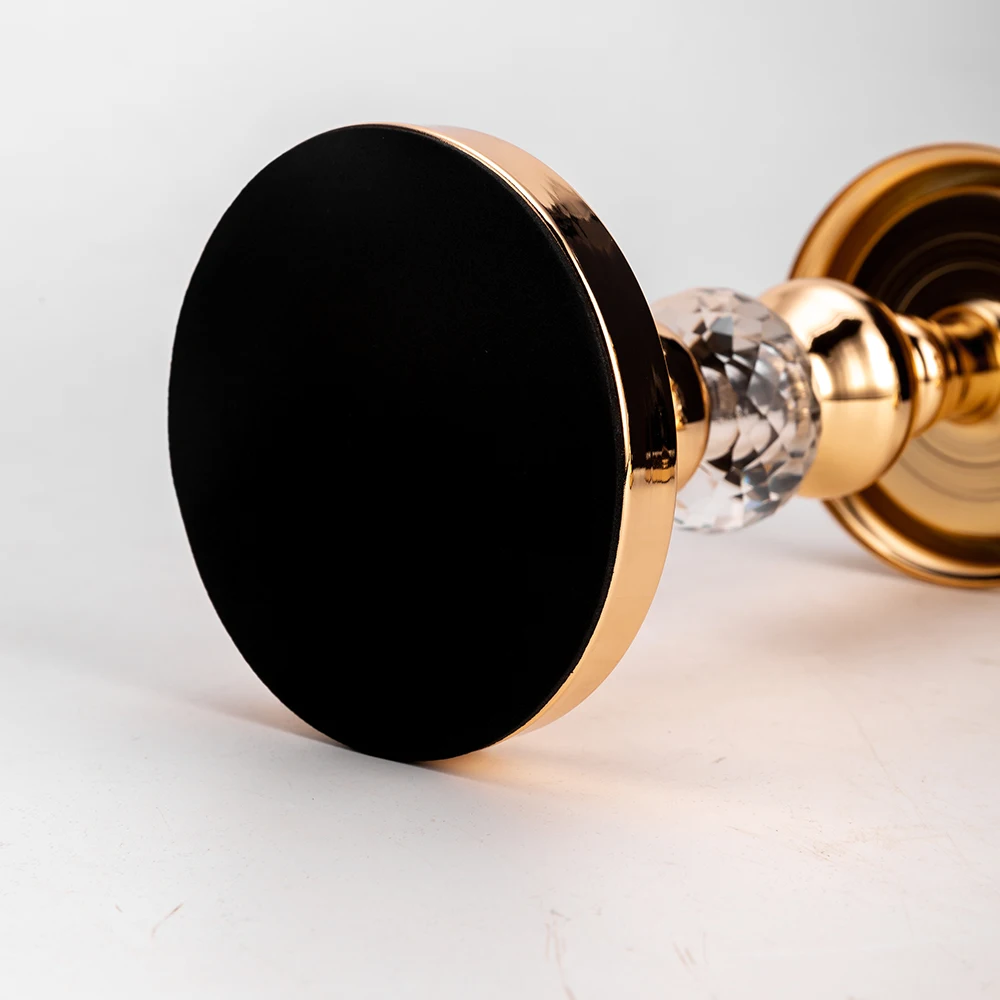 【Simply exquisite】➢features он имеет открытый поднос для свечей и большое взвешенное основание обеспечивает стабильность для хранения больших свечей. Изделие изготовлено из железа и хрусталя, каждая деталь была вручную натерта на очень гладкую поверхность и отделана золотом. Все Основы утяжелены и поставляются с нескользящей валяной подошвой, чтобы обеспечить прочность.