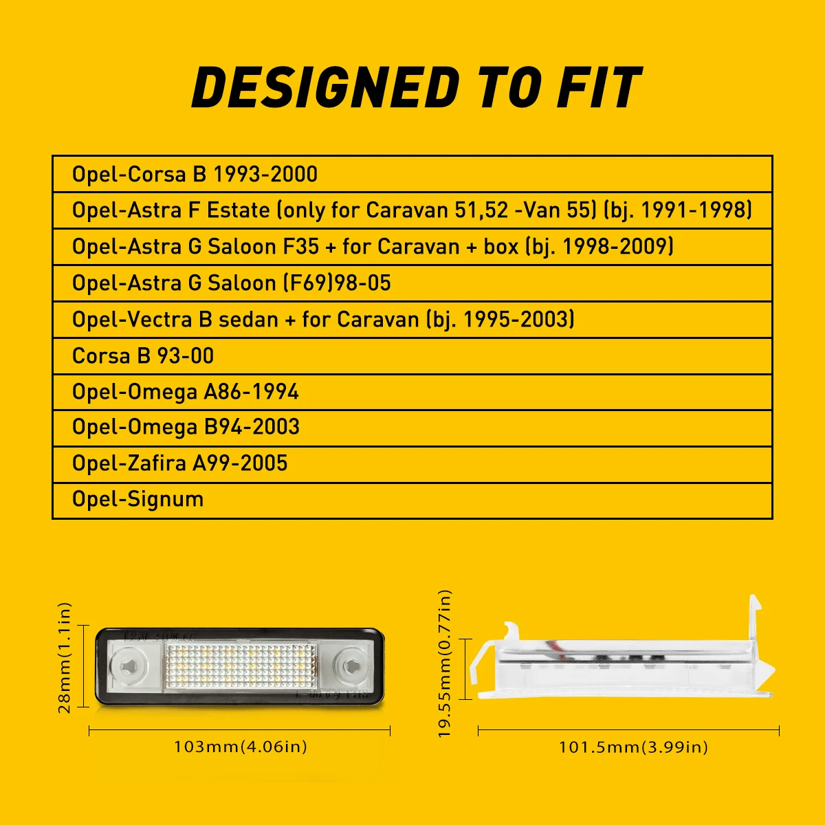 Технические характеристики: Материал: Пластик Цвет света: 6000 K белый Размеры: как на изображении Тип: Освещение номерного знака Напряжение: 12 В постоянного тока Светодиодный Количество: 18 светодиодный s Особенности: 100% новый и высококачественный Подключи и играй легко использовать вместо прежних ламп и готов Встроенный резистор-нет сообщения об ошибке бортовой компьютер Применимость: Для Opel Corsa B 1993-2000 Для Opel Astra F Estate (только караван 51,52-фургон 55) (bj. 1991-1998) Для Opel Astra G Saloon F35 + Caravan + box (bj. 1998-2009) Для Opel Astra G Saloon (F69) 98-05 Для Opel Vectra B Седан + караван (bj. 1995-2003) Для Corsa B 93-00 Для Opel/Omega A86-1994 Для Opel/Omega B94-2003 Для Opel Vectra Zafira A99-2005 Для Opel Signum Примечания: Перед оплатой внимательно проверьте таблицу размеров. Возможны отклонения на 0,1-0,5 см из-за ручного измерения. Цвет фактического товара может немного отличаться от изображения в списке из-за разного экрана компьютера, спасибо за понимание. Посылка включает в себя: 2 шт. номерные знаки