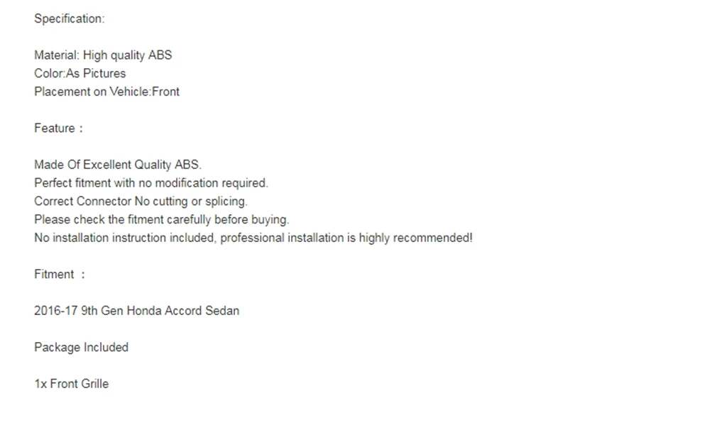 Отзывы о Gloss Black Out Sport Style Front Grille Grill For Honda Accord Sedan 9th Gen 2016 2017 | Автомобили и мотоциклы