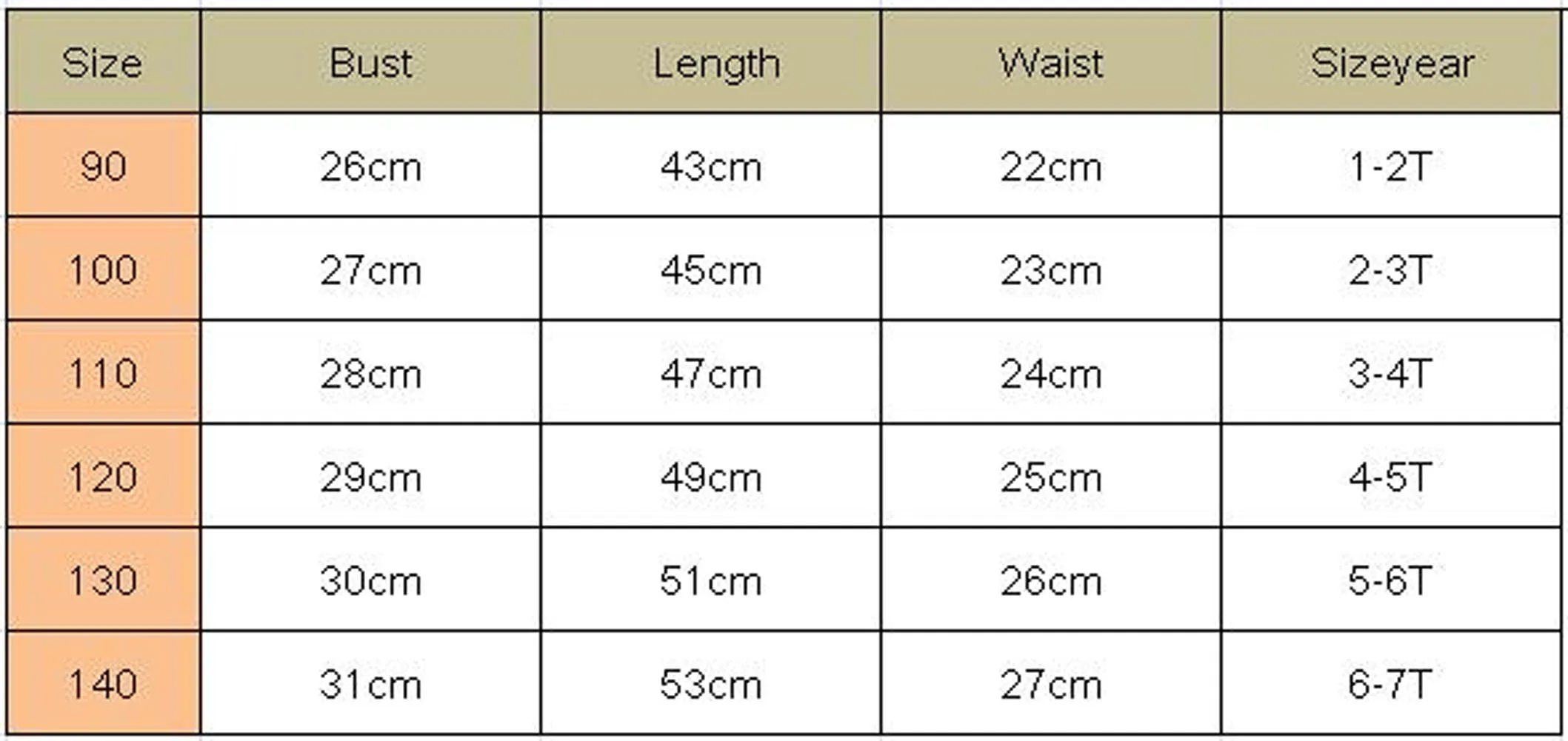 Size: 90 100 110 120 130 140