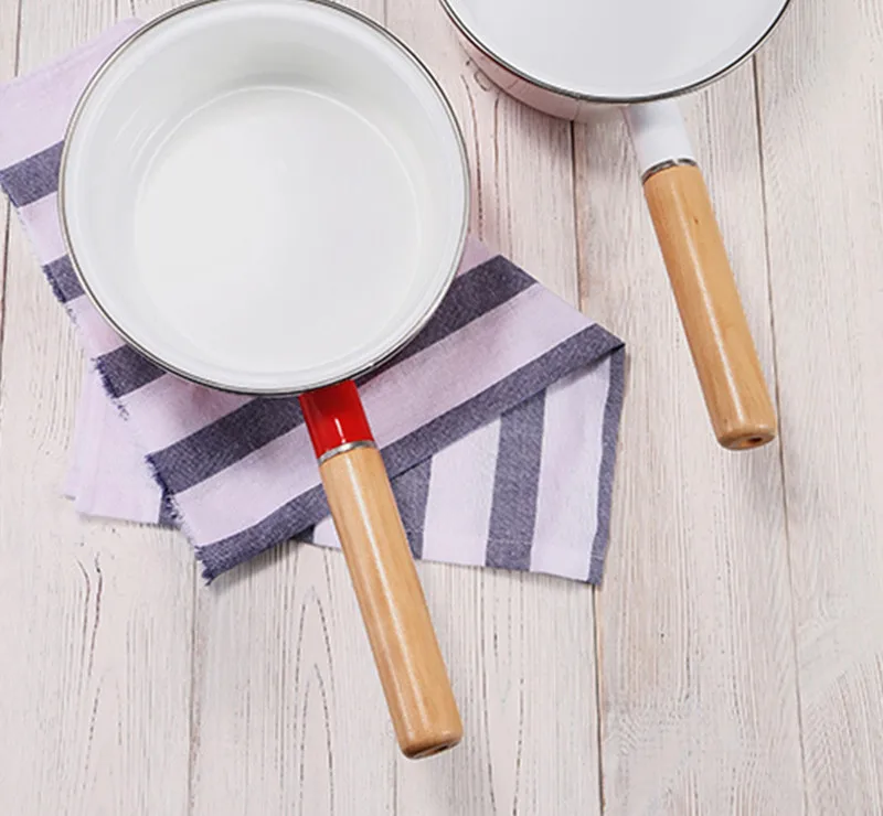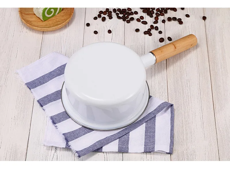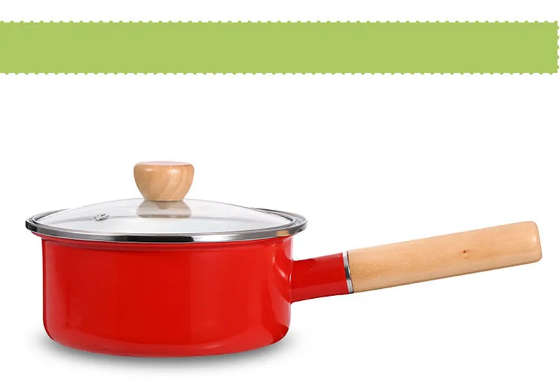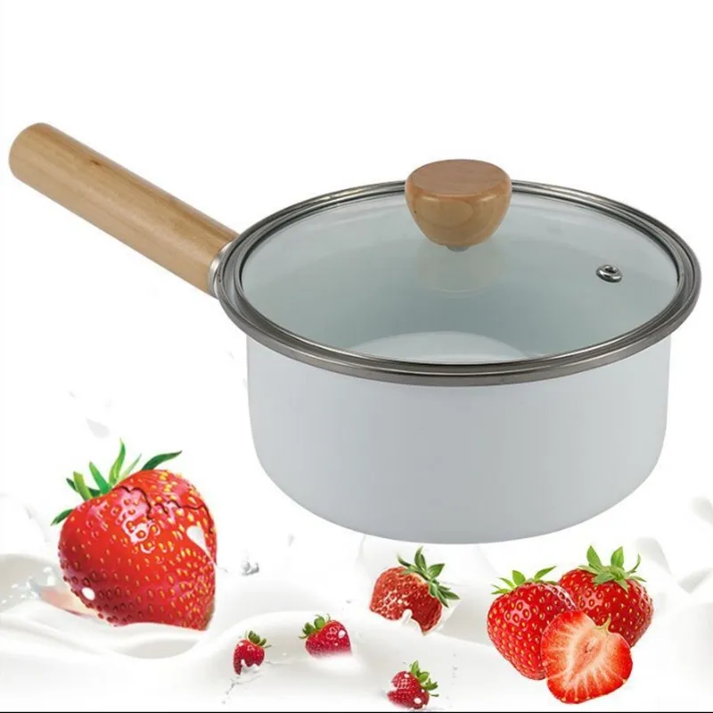 Корейский эмалированный суповый горшок с одной ручкой, молочный горшок с толстой эмалью, с одной ручкой, деревянная ручка, антипригарный горячий молочный горшок, горшок для лапши