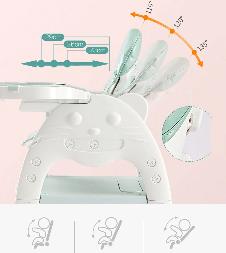 Комбинированный обеденный стул, переменный обеденный стул, учебный стол и стул можно использовать для детей разного возраста и может использоваться до 8 лет.
