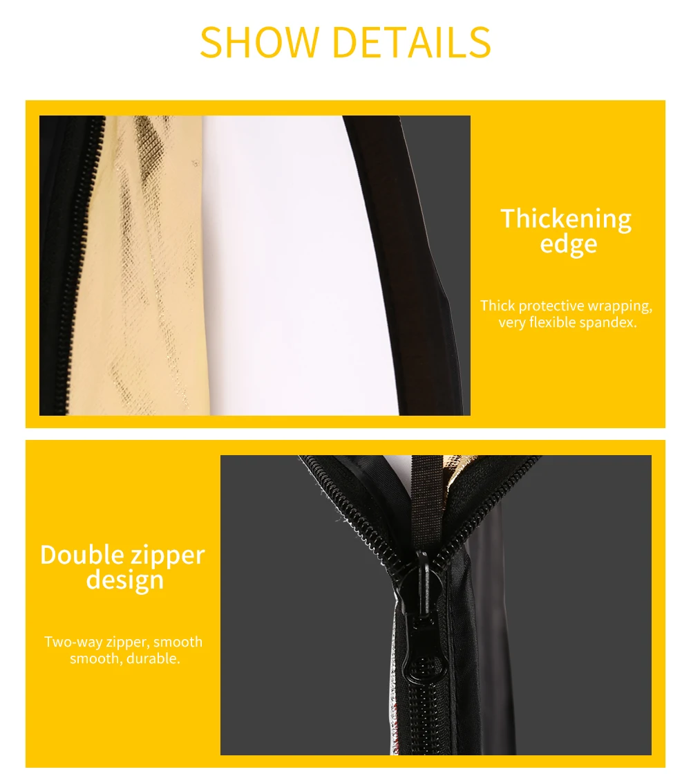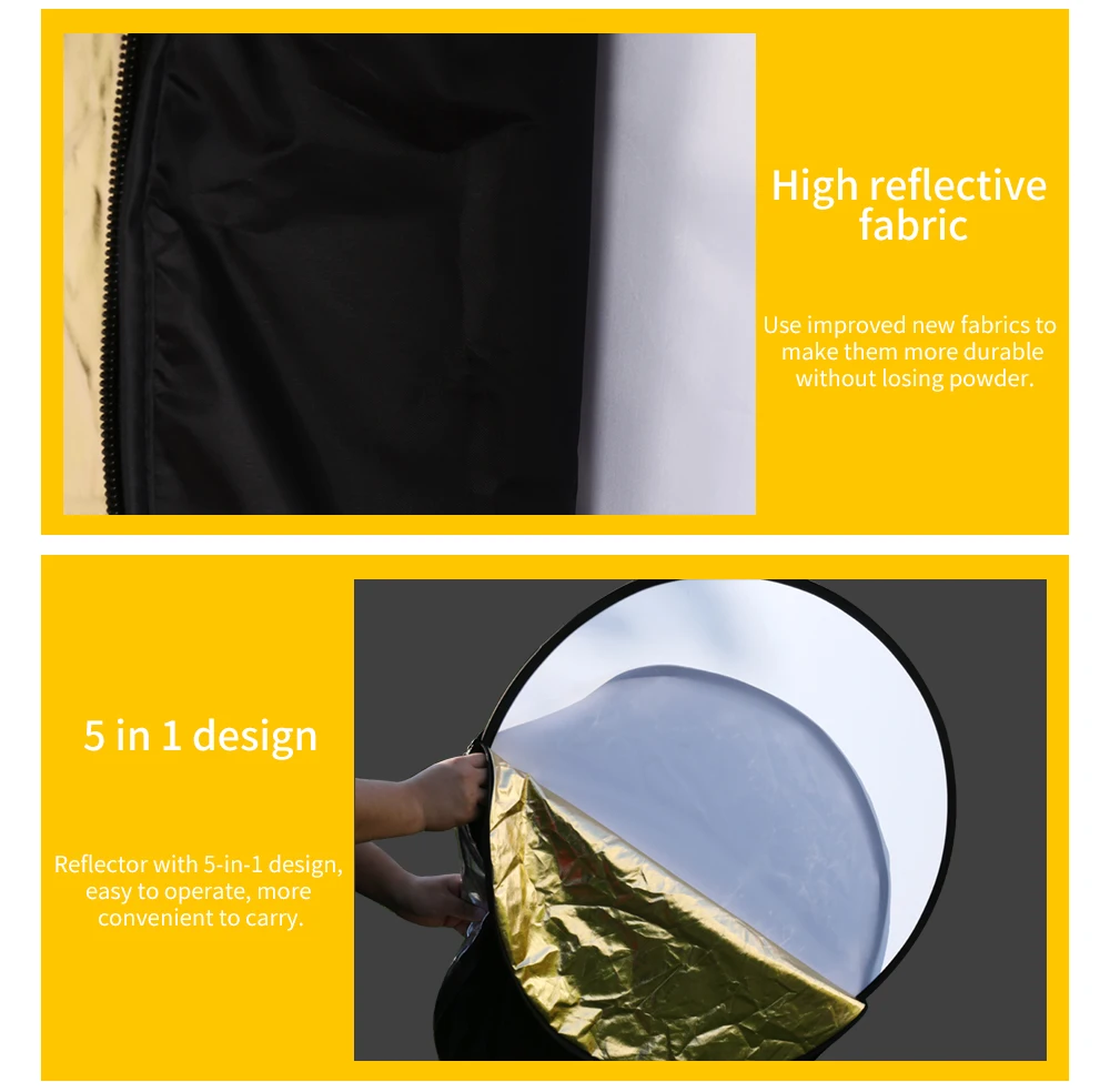 Технические характеристики Форма: Круглый Размеры в разложенном виде: 11,8 дюйма/30 см Размеры рухнул: 5,9 дюймов (15 см) Круглый Подходит для любого стандартного подставка для держателя отражателя посылка включает в себя: 1x11,8 дюйма/30 см 5-в-1 складной отражатель