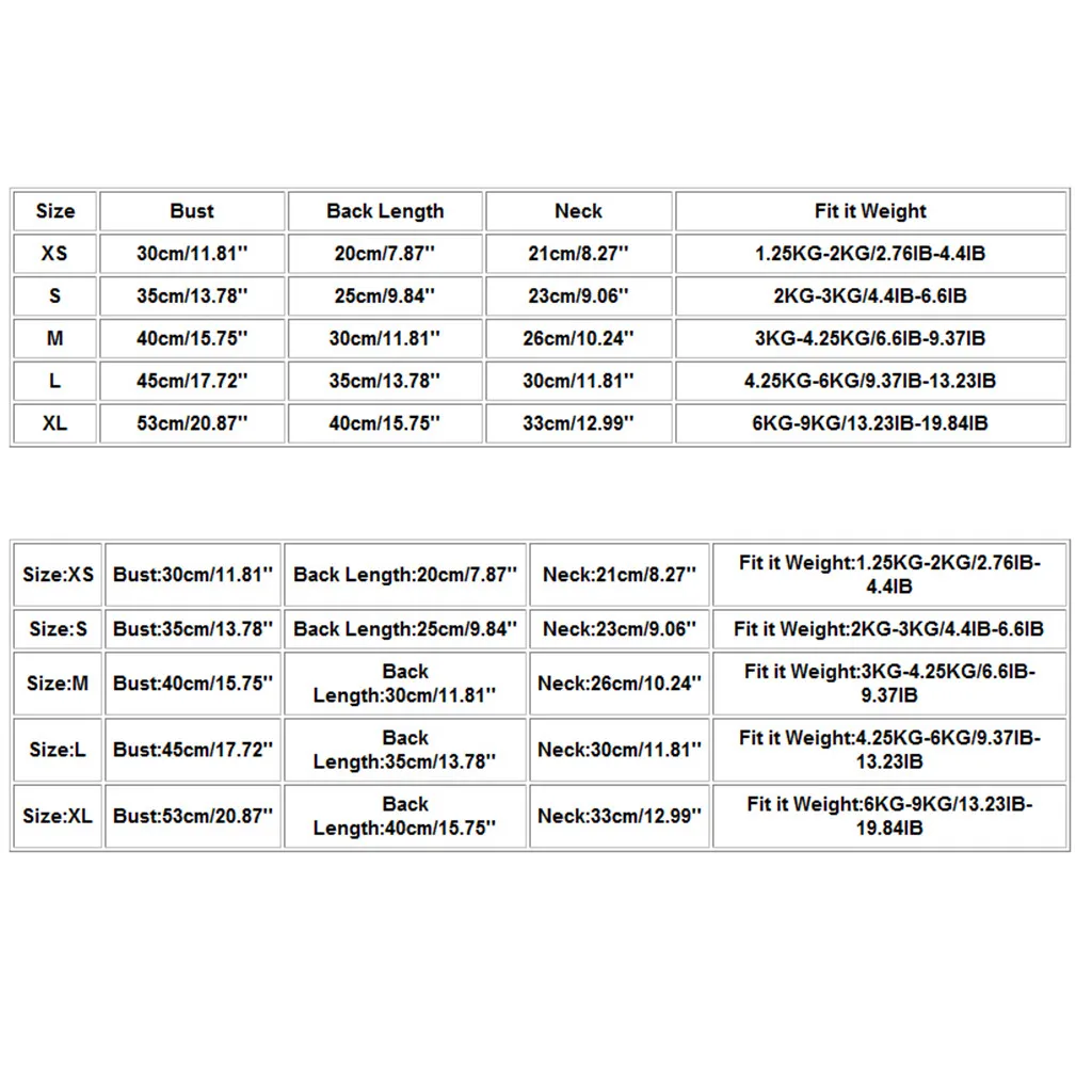 | Размер | Обхват груди | Задняя Длина | Шеи | К нему Вес |