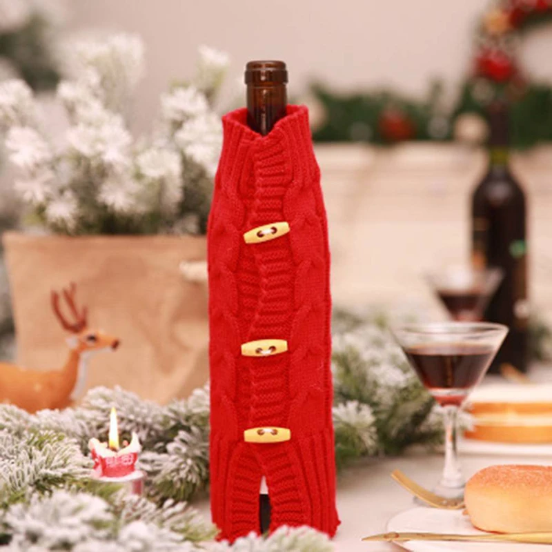 Отзывы о 1 шт. Рождественская бутылка вина крышка вязаный Декор Вязание Кнопка для бутылки