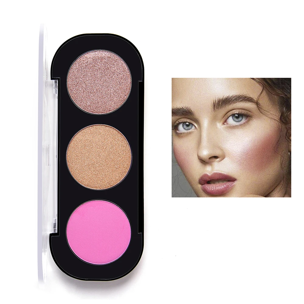Макияж 3 цвета мерцающие вещества румяна бронзатор для лица палетка для контуринга с румянами порошок хайлайтер косметика Maquiagem