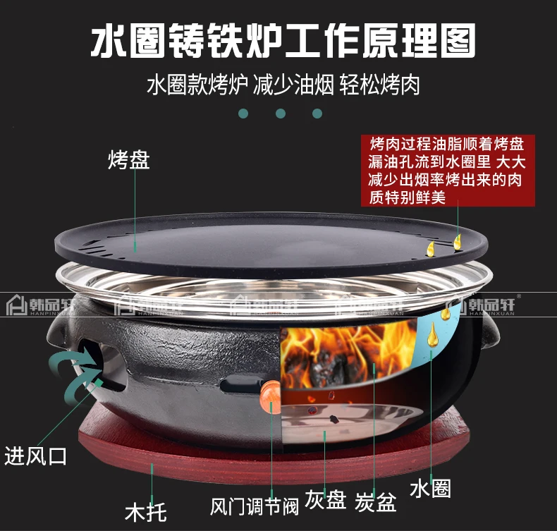 Отзывы о Korean cast iron carbon baking furnace stove commercial exhaust smoking roast meat Japanese grill table charcoal BBQ oven | Дом и сад