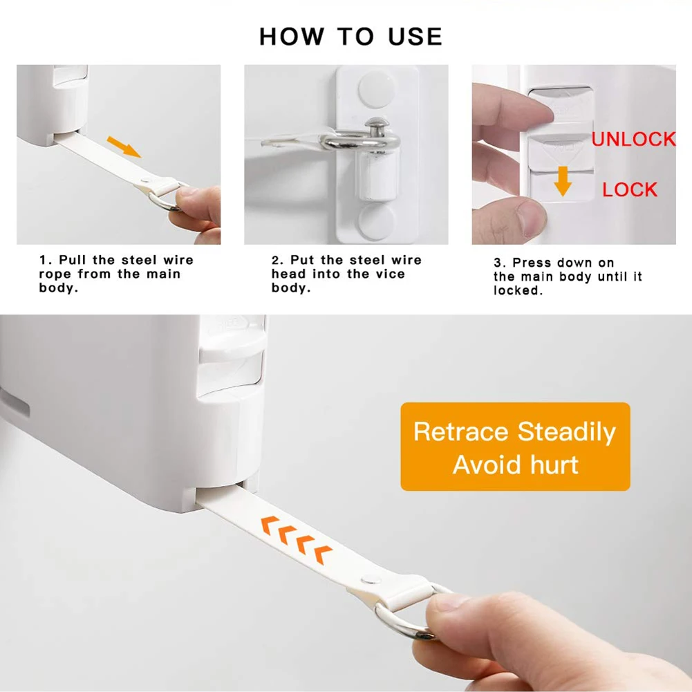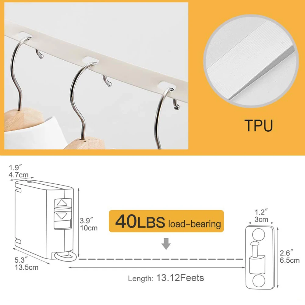 5. Емкость-Эта регулируемая линия сушки простирается до 4 метров (13,12 футов), имеет двойные веревки и может нести 20 кг (44 фунта) для каждой линии.