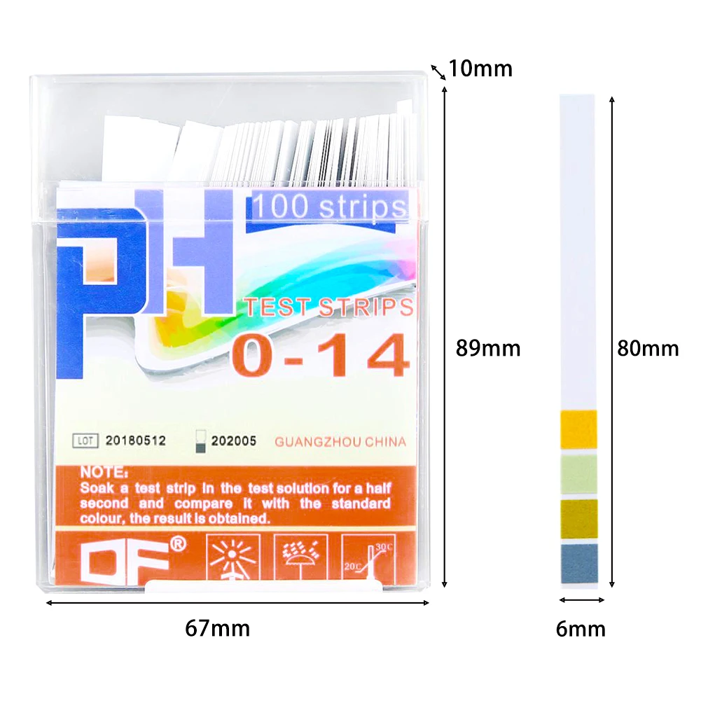 Как добраться до Применение: Извлеките одну тестовую полоску из пластикового контейнера, держа ее с конца без цветных прокладок. Окуните ленту (все 4 цветные прокладки) в прозрачную жидкость, которая будет протестирована в течение 1 секунды. В зависимости от pH образца, цвет изменится почти мгновенно. Встряхните полоску, чтобы удалить излишки жидкости. Сравните цвет подушечек с диаграммой pH на этикетке коробки, чтобы получить значение pH проверенной жидкости. Значение pH 7 является нейтральным. Значение pH менее 7 является кислотным, а значение pH больше 7-щелочным. Шкала считывает от 1 до 14: 1-3 означает очень кислотное вещество 4-6 означает кислое вещество 7 указывает нейтральный 8-11 показывает Щелочность 12-14 показывает очень высокий уровень щелочности PH 1-14 цветов в каждой упаковке Изменения цвета тестовой полосы должны совпадать с цветовой таблицей рН в течение 15 секунд Как интерпретировать результаты тестирования pH воды: Значение рН определенного образца воды достигается путем соответствия цветов реагентов прокладки после погружения в тестовую жидкость приблизительно в течение 1 секунды по шкале рН, и отметим соответствующий номер. Результаты испытаний будут варьироваться от 0 до 14,0 и могут быть отнесены к категории кислотных, нейтральных или щелочных. Кислотный (0,0-6,0) Если вы проверяете воду с помощью набора для тестирования pH и результаты от 0 до 6, это означает, что вода может быть кислой и мягкой с возможностью коррозии. Нейтральный (7,0) Считывание 7,0 по шкале pH-идеальный уровень для питьевой воды. Тем не менее, согласно международным водным инструкциям, вода считается безопасной для потребления с показаниями 6,5-8,5. Щелочные (8,0-14,0) Вода, которая является щелочной, будет производить показания от 8,0 до 14,0 по шкале pH. Было сделано несколько жалоб на полезные для здоровья свойства питьевой щелочной воды. Информация о продукте: Цвет: белый Размеры: как показано на рисунке Диапазон PH: 0-14 Количество: 1 коробка (100 шт.) Посылка включает в себя: 1 коробка * тест-полоски (100 шт.) Примечание: Не может указать кислотный или щелочный раствор, когда его плотность была ниже 0.01%. Сохраняйте сухость для остальной бумаги.