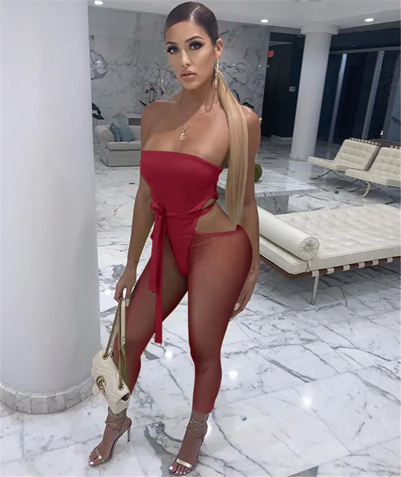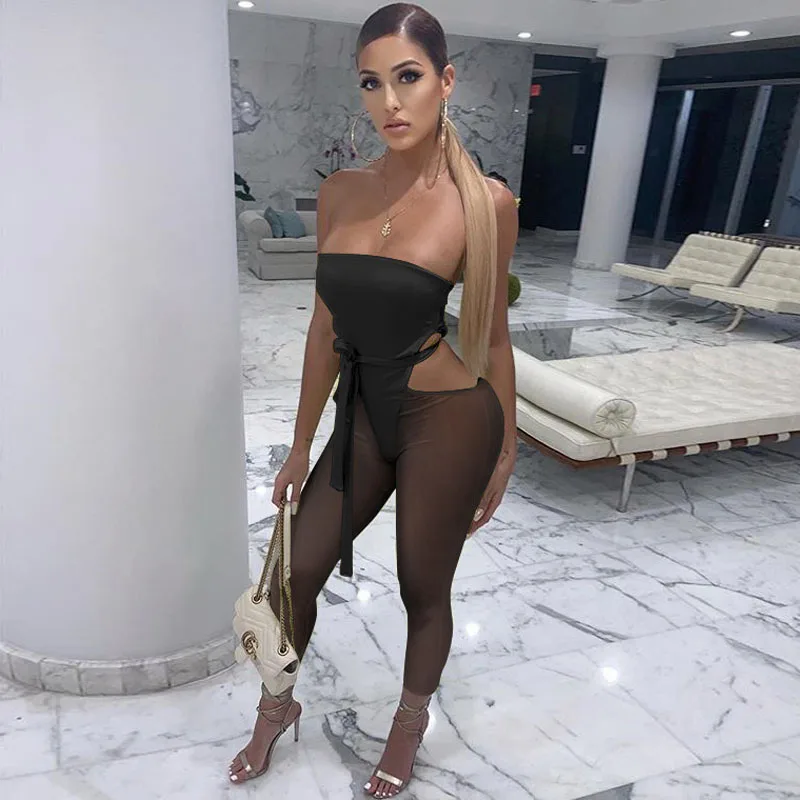 Отзывы о Сексуальные с сеточкой в стиле петчворк комбинезоны без бретелек Облегающий