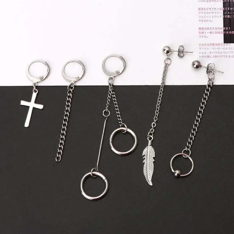 Отзывы о Комплект серег KPOP с цепочкой и кисточкой для мальчиков 5 шт. корейские ювелирные