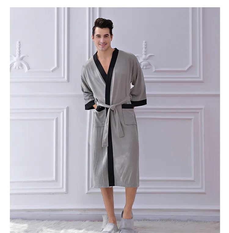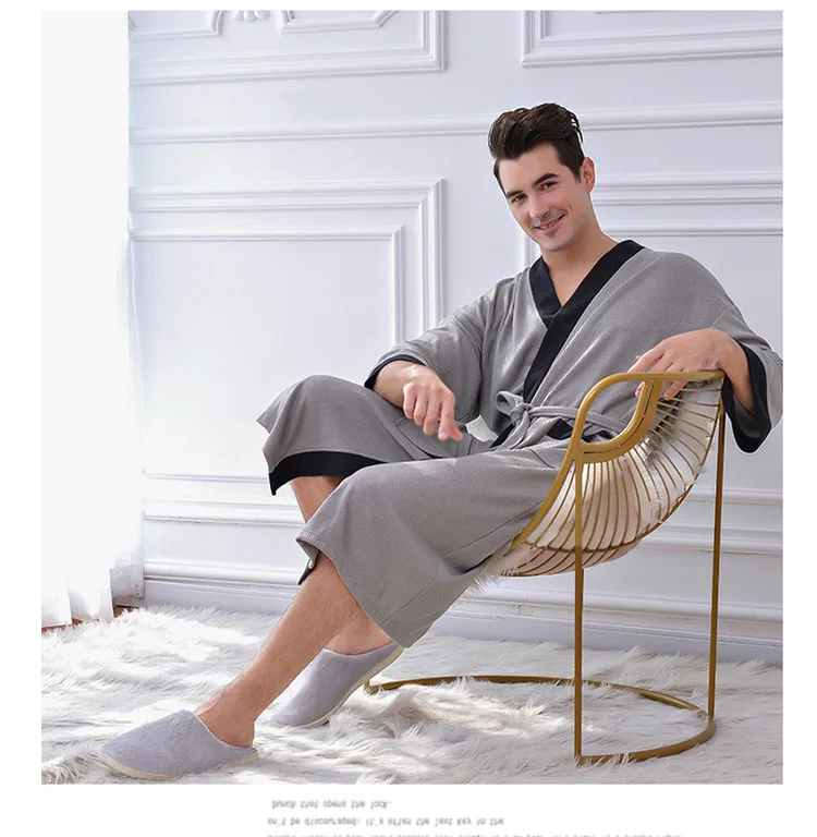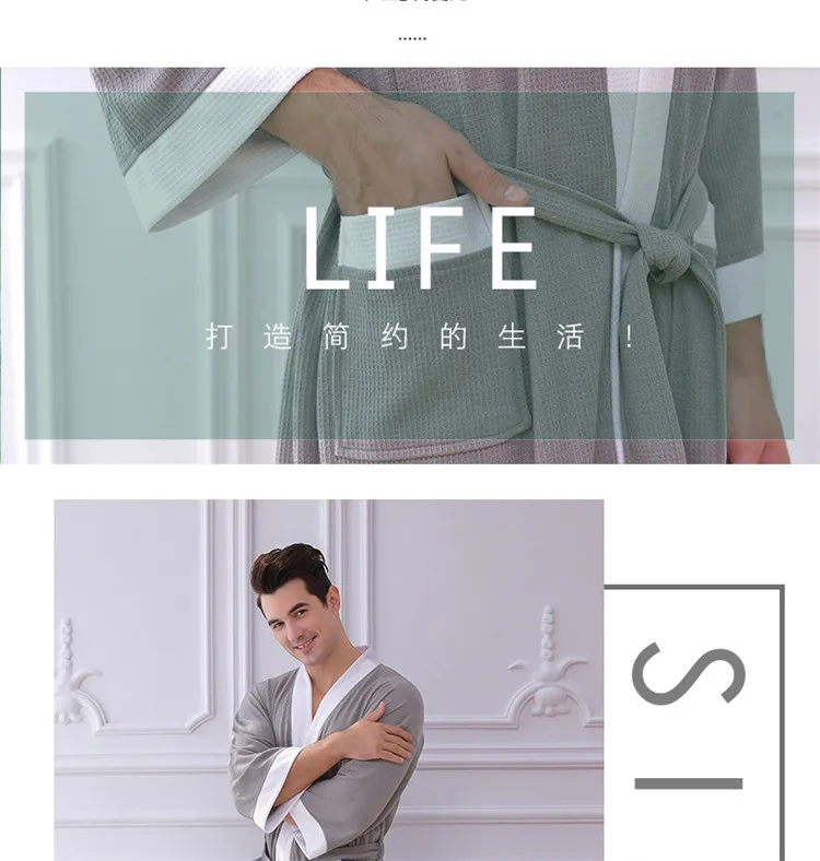Отзывы о 2019 новый мужской повседневный халат Осень-зима вафельный Халат свободный
