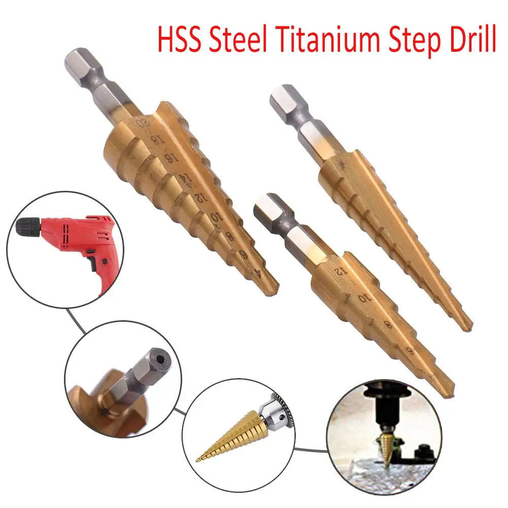 3 шт. титановый HSS конусный ступенчатый набор сверл Imperial 1/4 "шестигранный хвостовик