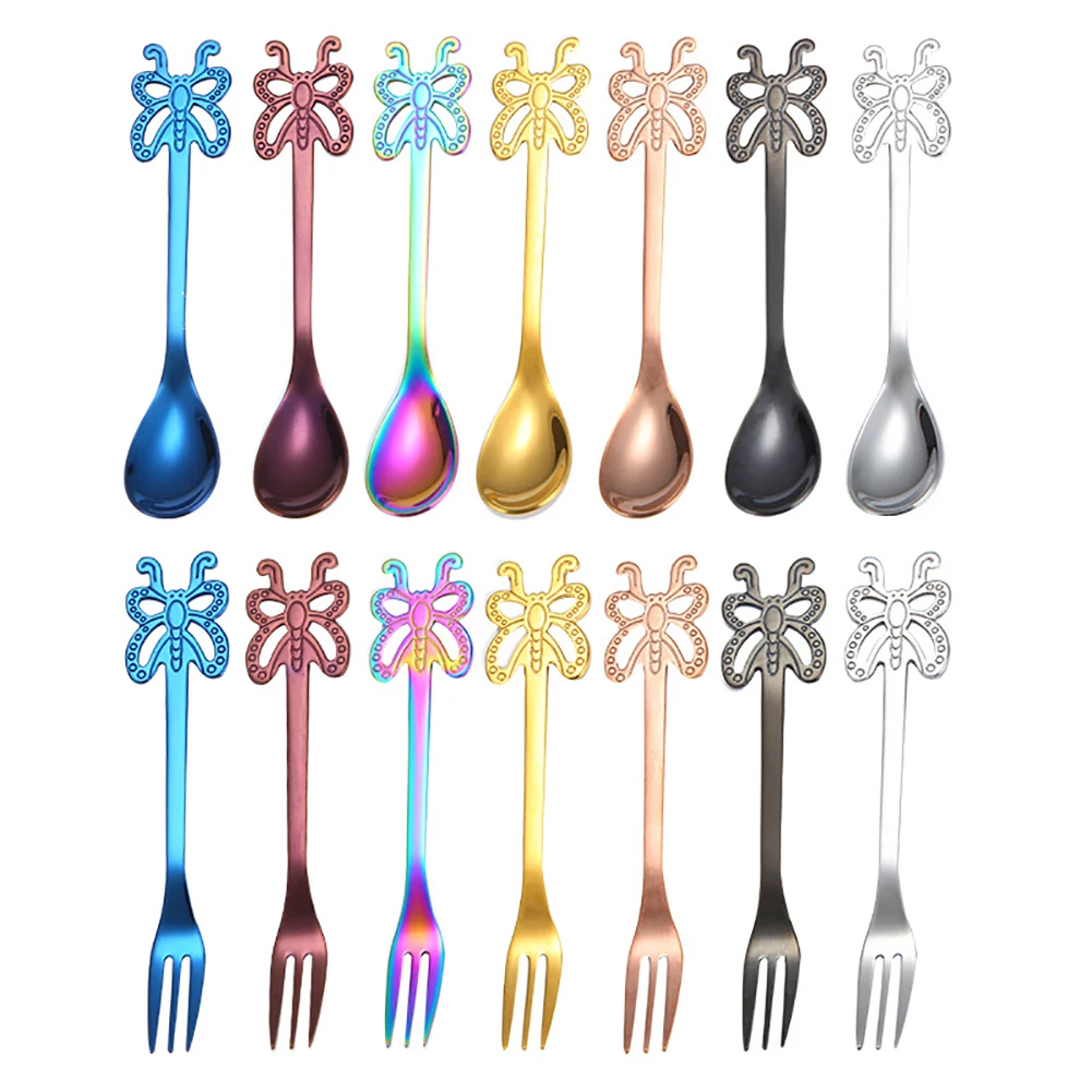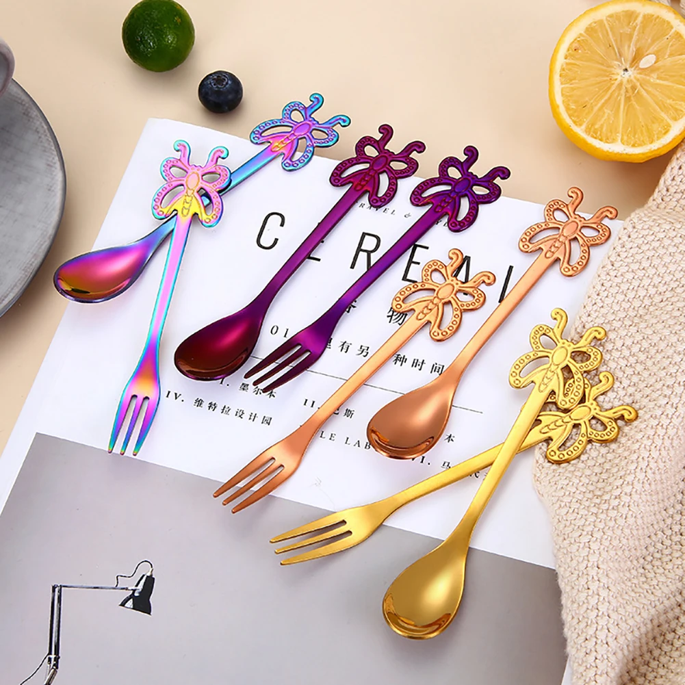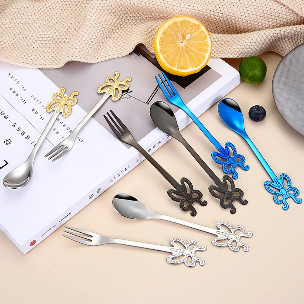 Портативная Бабочка моделирование из нержавеющей стали чай десерт Ложка Вилка Кухня Посуда