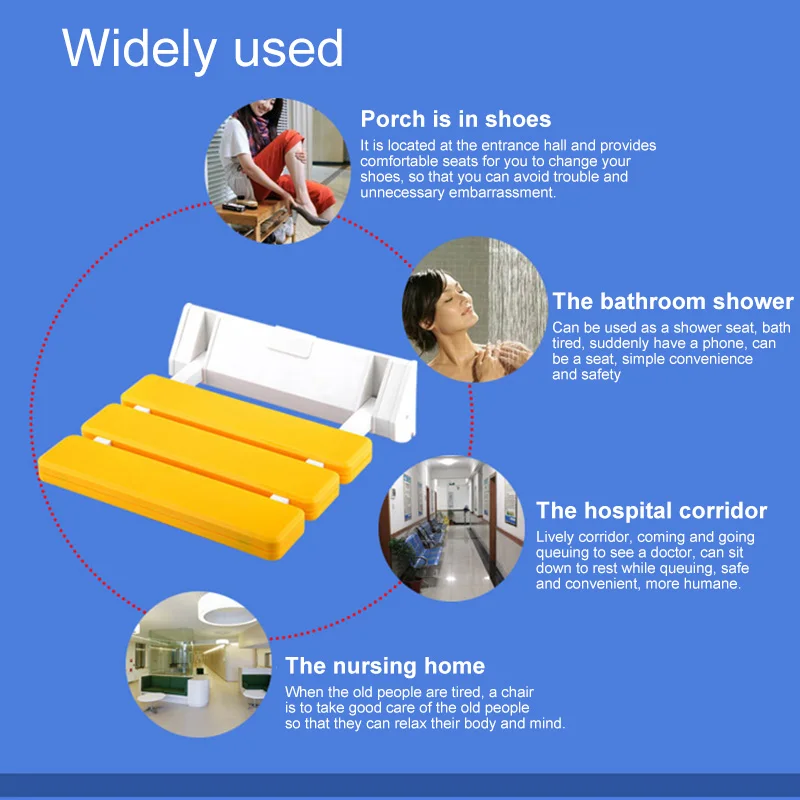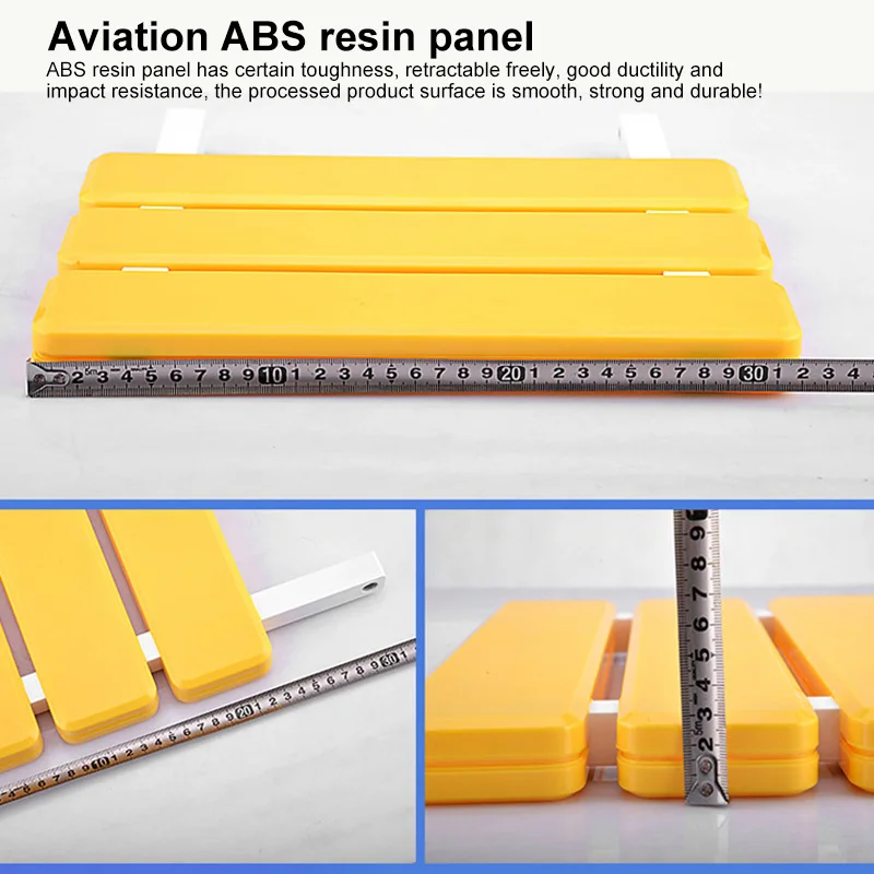 Складной табурет для ванной комнаты имеет гладкую поверхность высокого качества ABS как панель и алюминиевый сплав как основание, которое является антикоррозионным, прочным, твердым и износостойким. Складной стул для ванной комнаты используется для длительного использования.