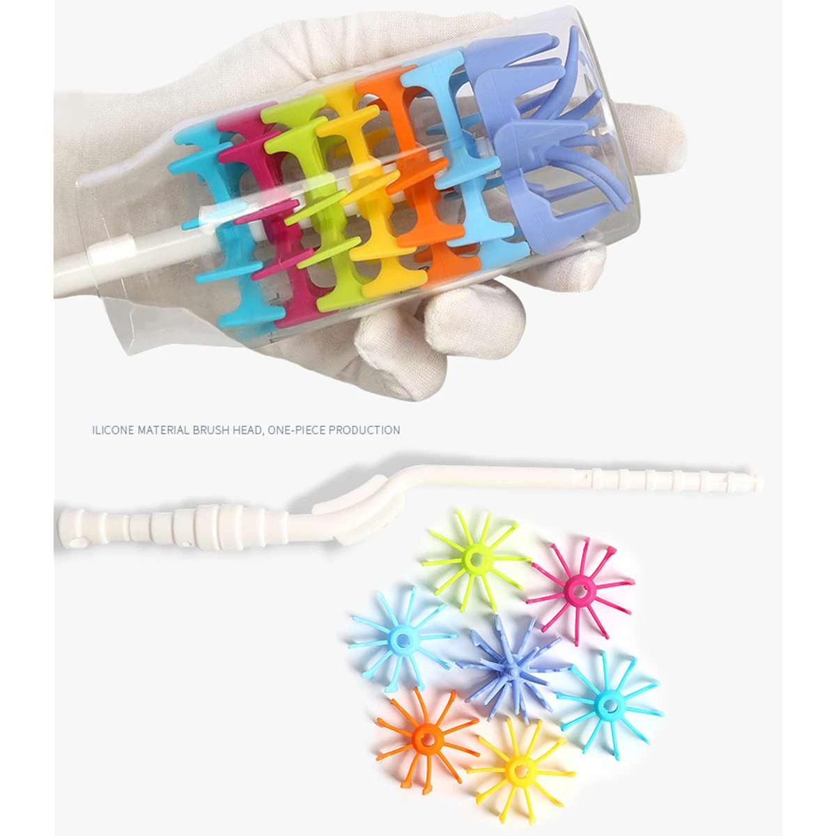 Flexible and durable silicone brush wont scratch the bottle and other containers, suit to clean all kinds of milk bottles, cup and vase, etc.