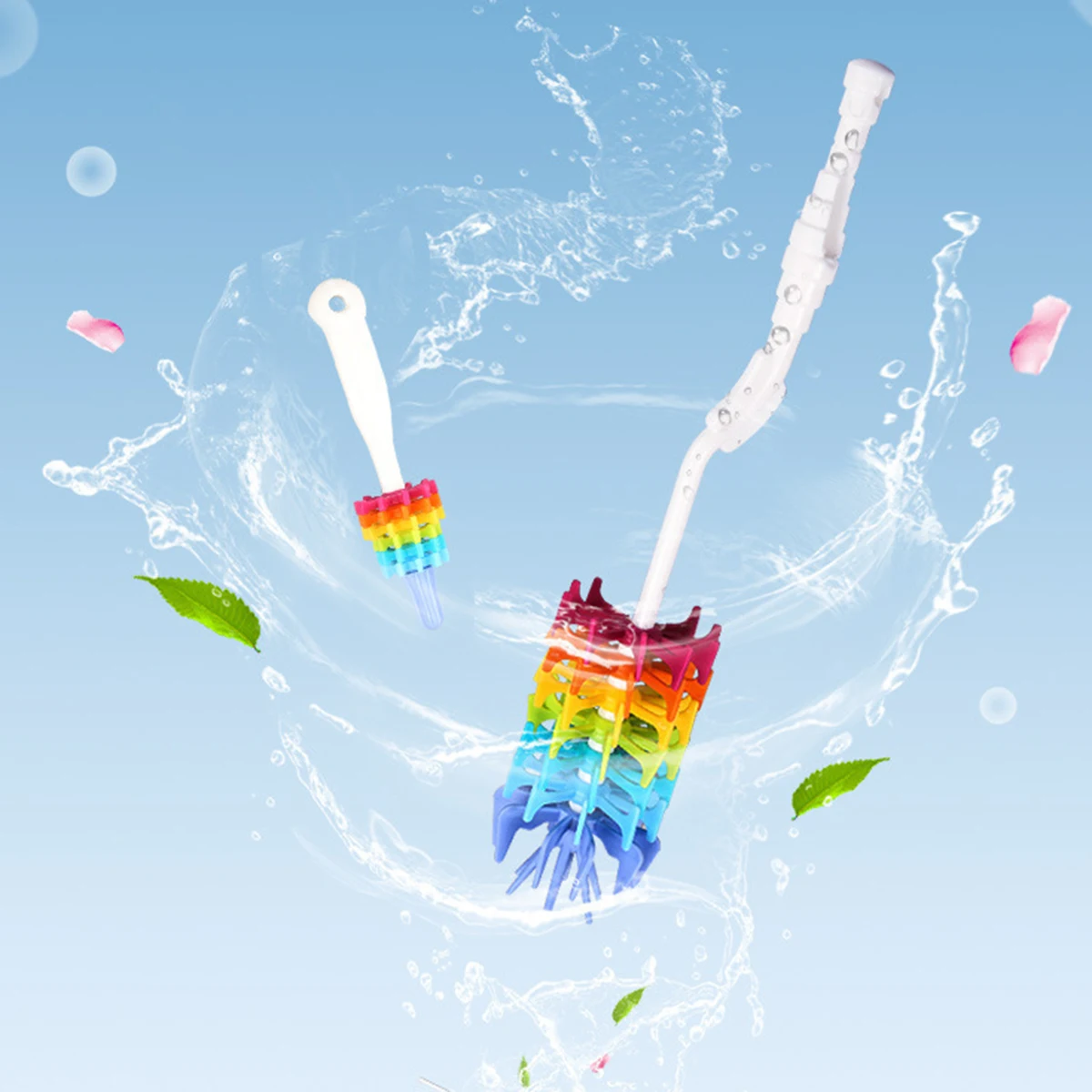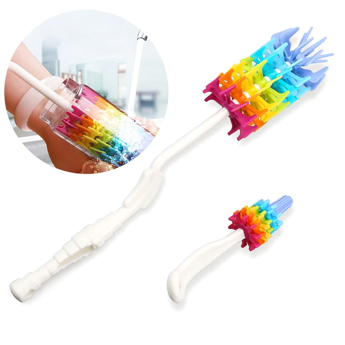 360°rotating long handle brush can easily reach the bottom of the bottle, all sizes and corners to give a thorough cleaning effortless, no dead angle.