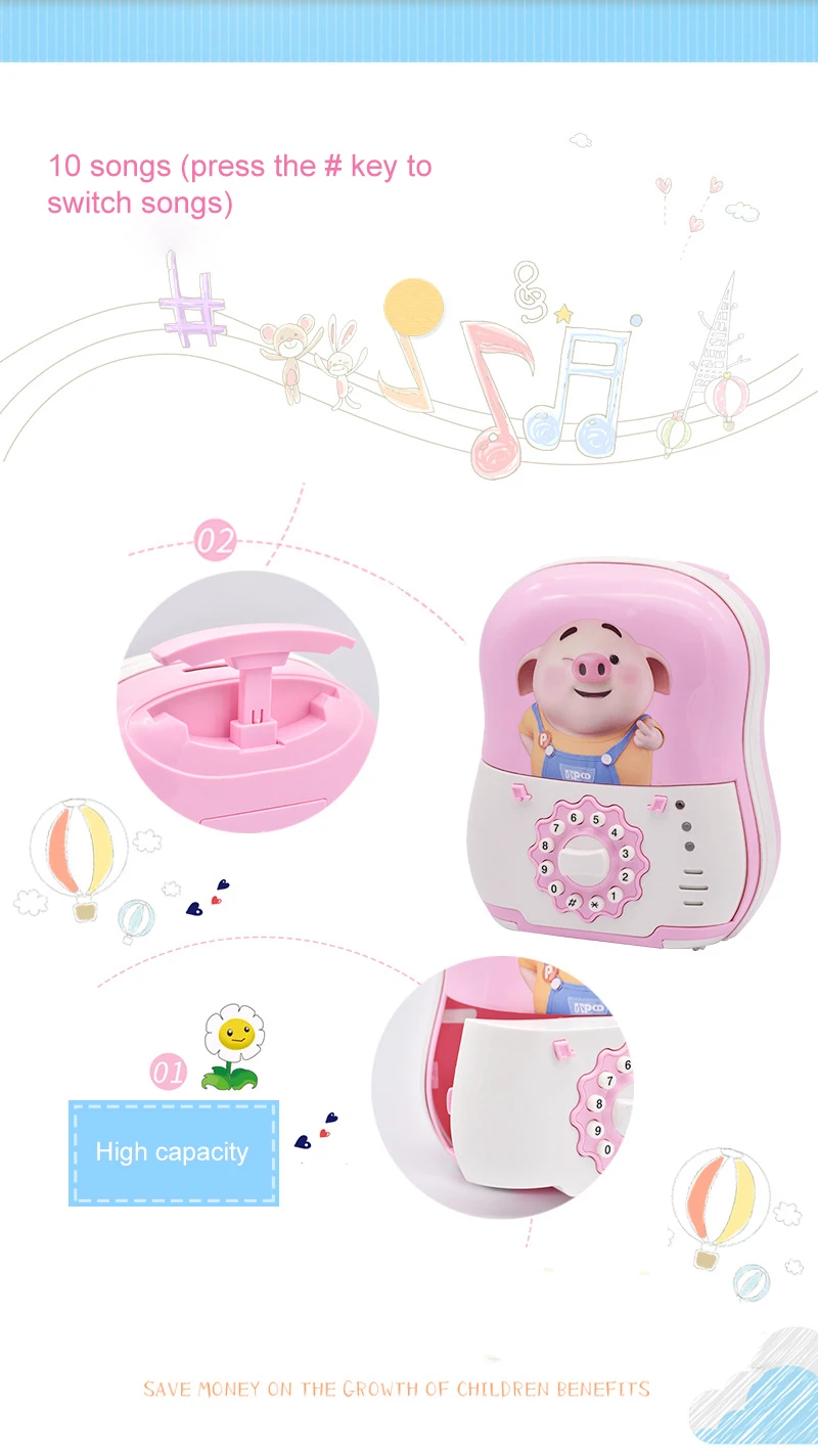 Money Toy Настройка паролей 12 стиль Детская электрическая мультяшная копилка Свинья Раннее детство музыкальная история машина пластик