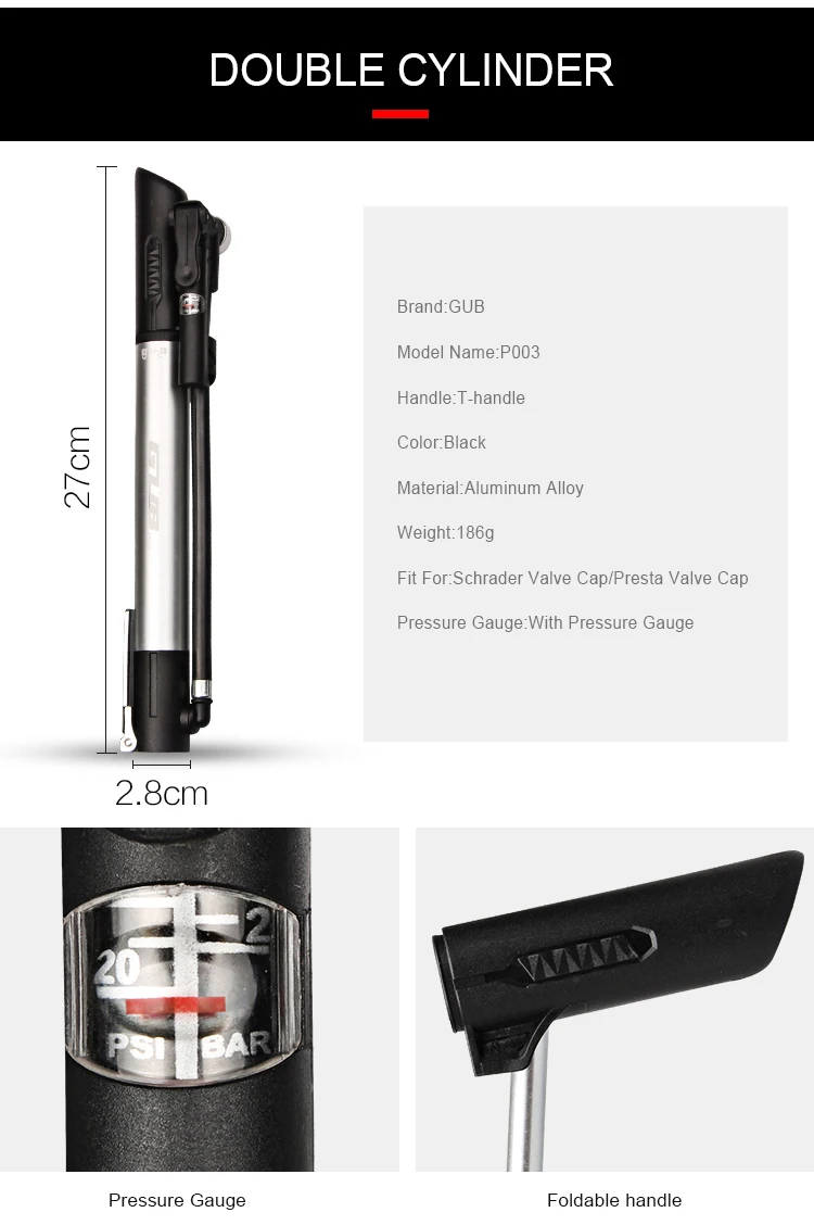 Отзывы о Насос для велосипеда GUB портативный из алюминиевого сплава 120 фунтов на